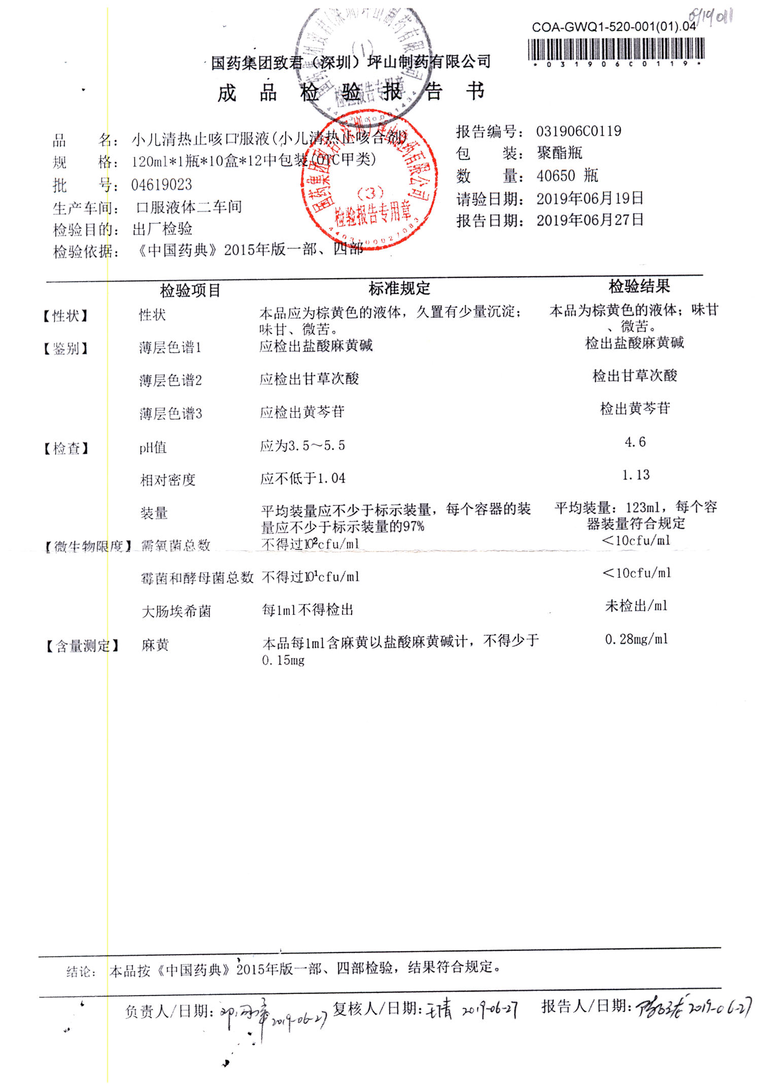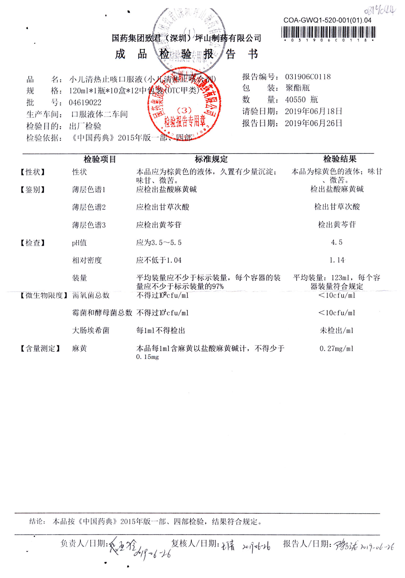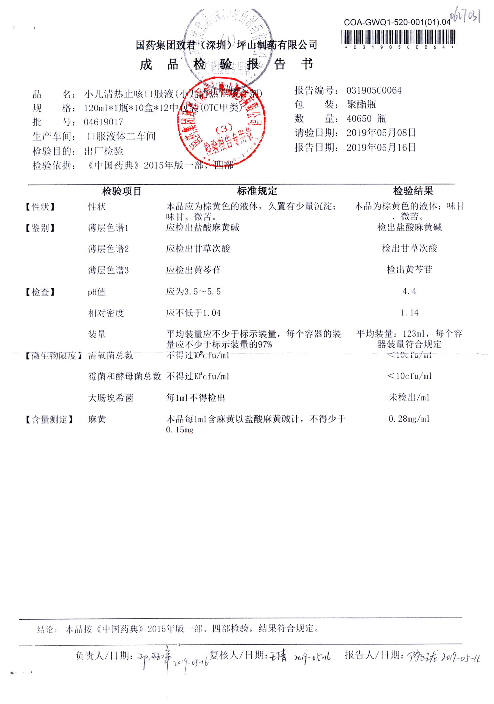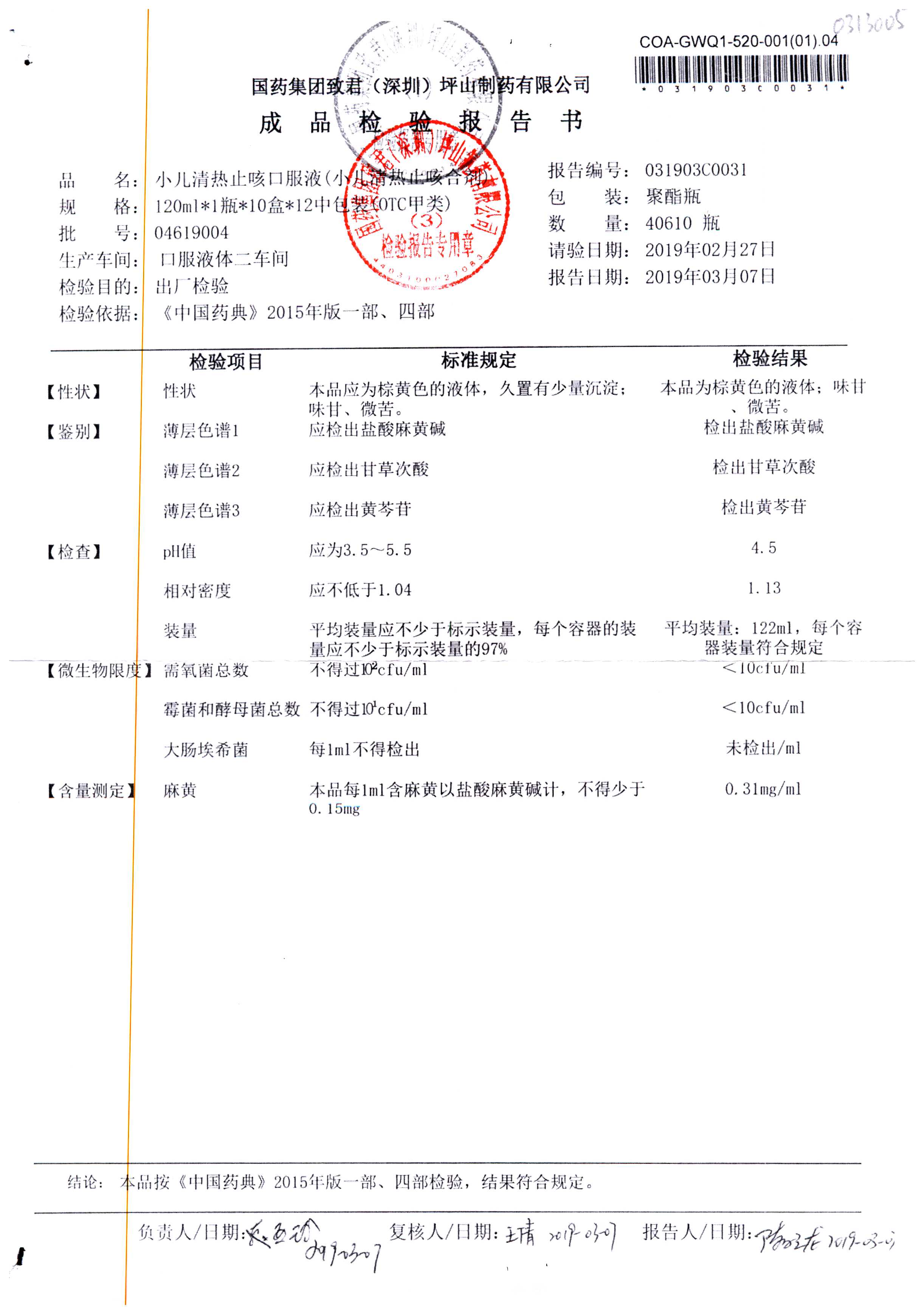 | 小兒清熱止咳口服液 | 120ml | 04619004 | 查看詳情 |
