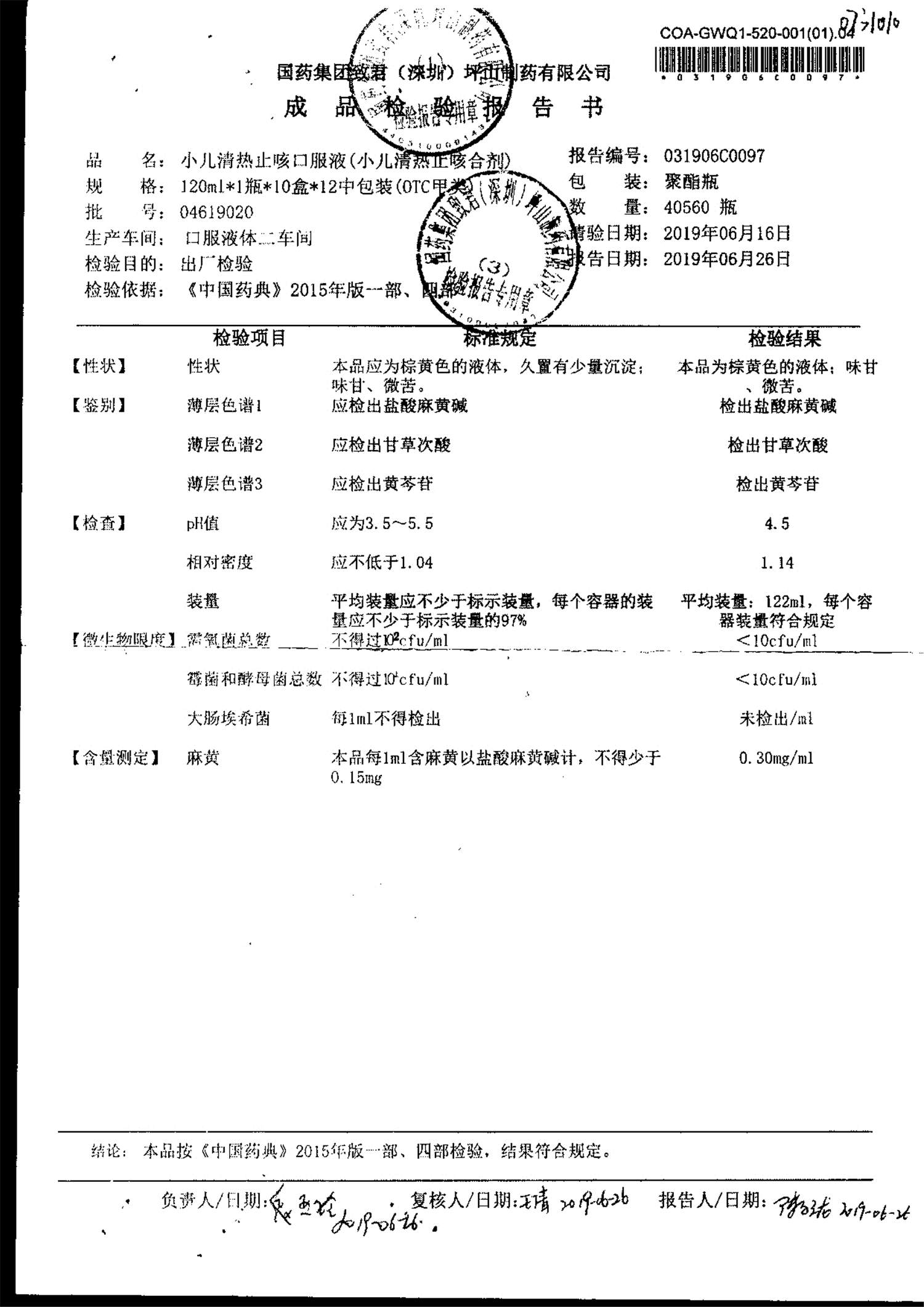 | 小兒清熱止咳口服液 | 120ml | 04619020 | 查看詳情 |