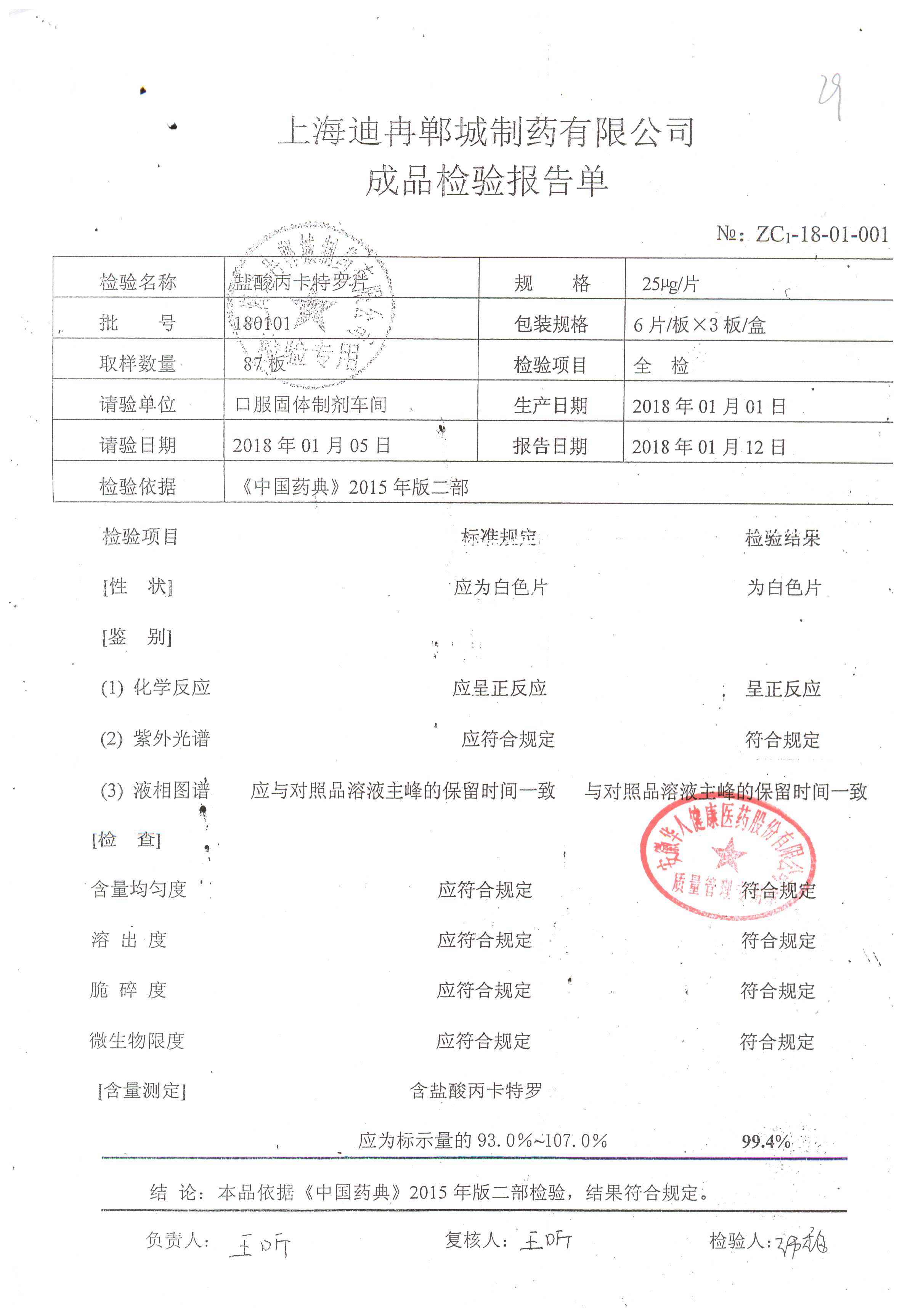 | 鹽酸丙卡特羅片 | 25ug*18s | 170501 | 查看詳情 |