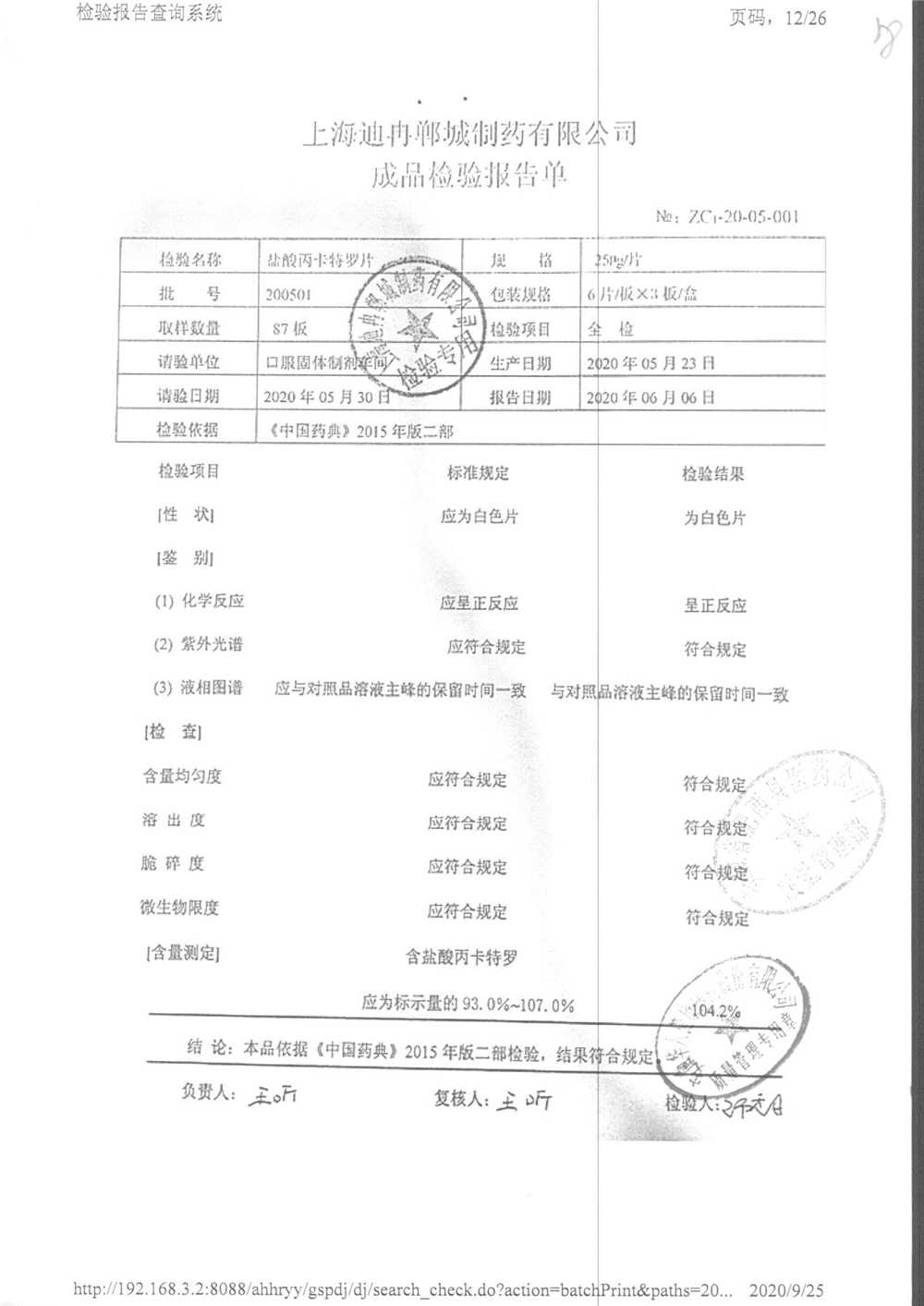 | 鹽酸丙卡特羅片 | 25ug*18s | 200501 | 查看詳情 |