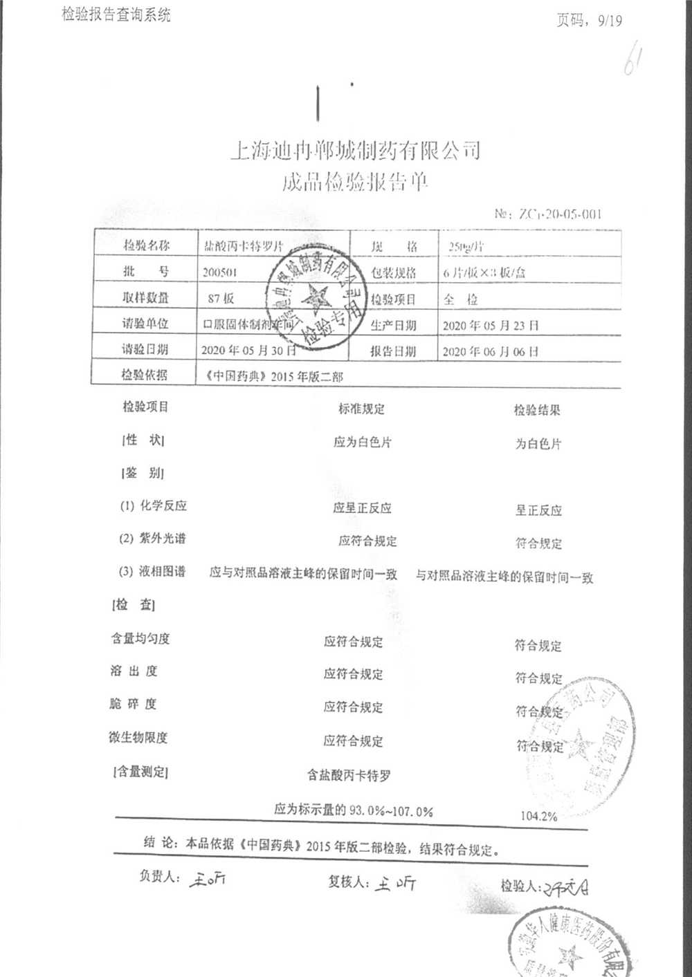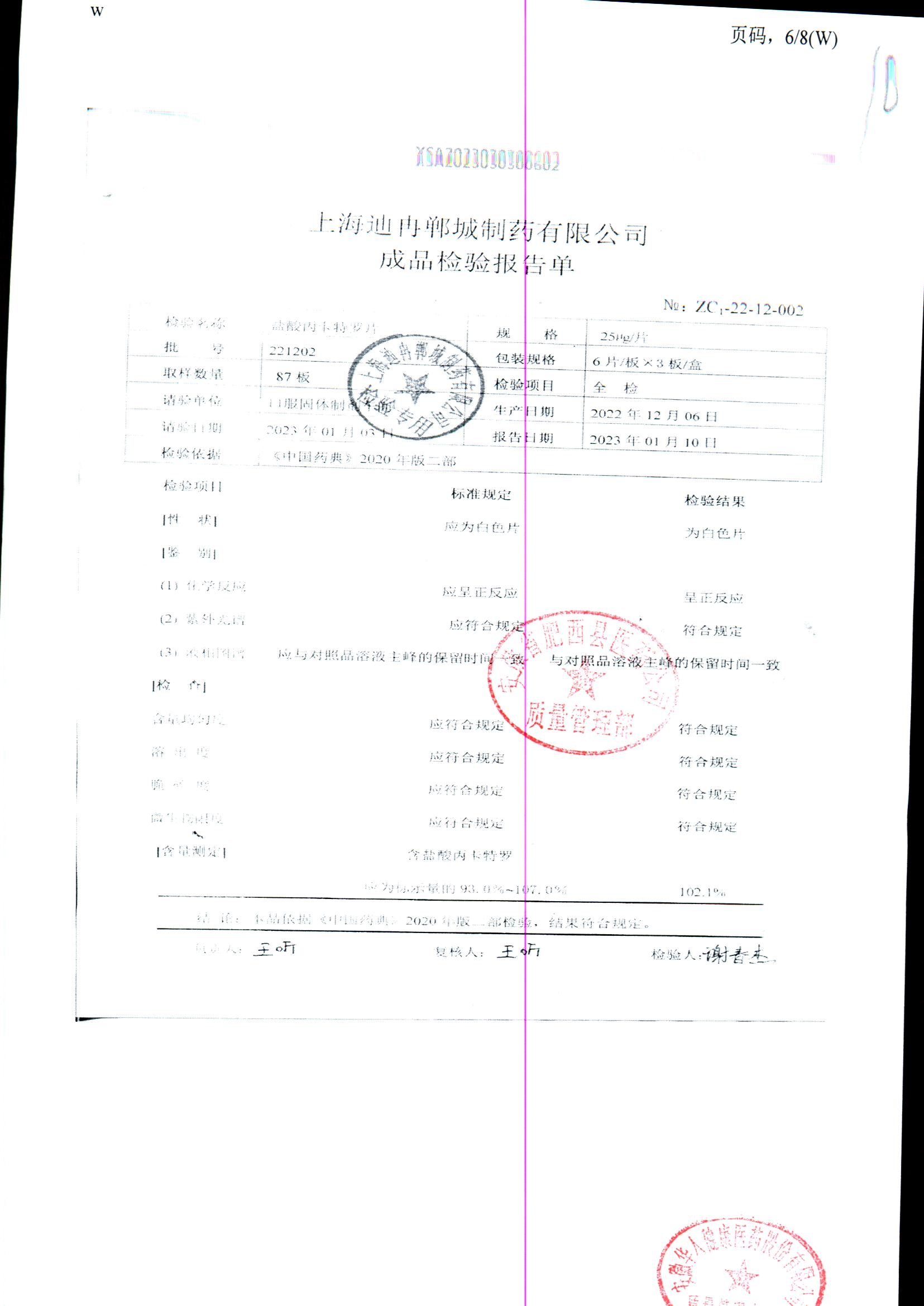 | 名稱(chēng) | 規(guī)格 | 批號(hào) | 藥檢報(bào)告 |