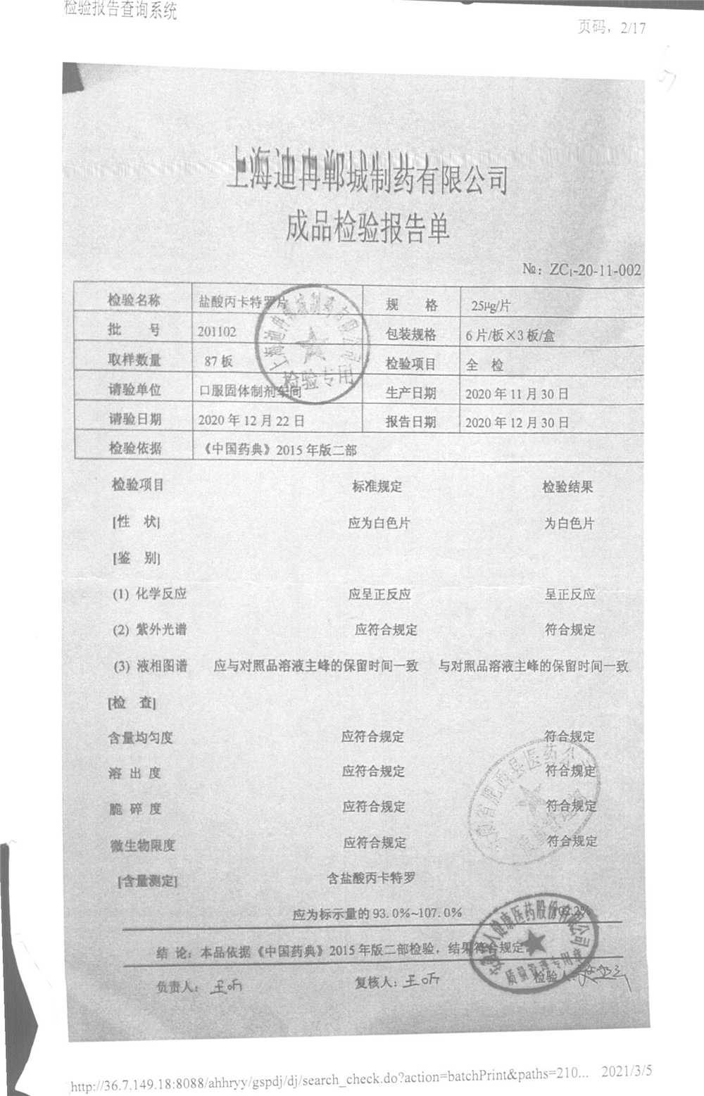 | 鹽酸丙卡特羅片 | 25ug*18s | 191201 | 查看詳情 |