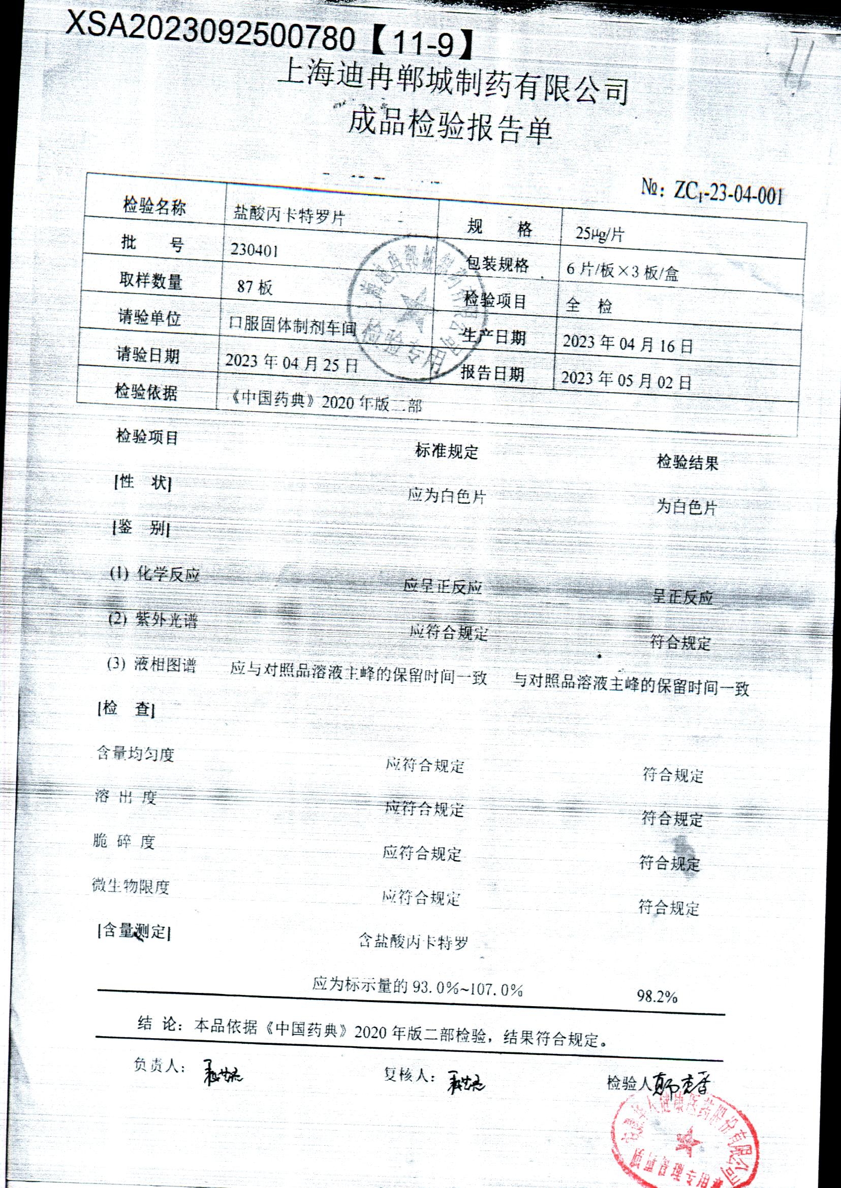 | 鹽酸丙卡特羅片 | 25ug*18s | 230401 | 查看詳情 |