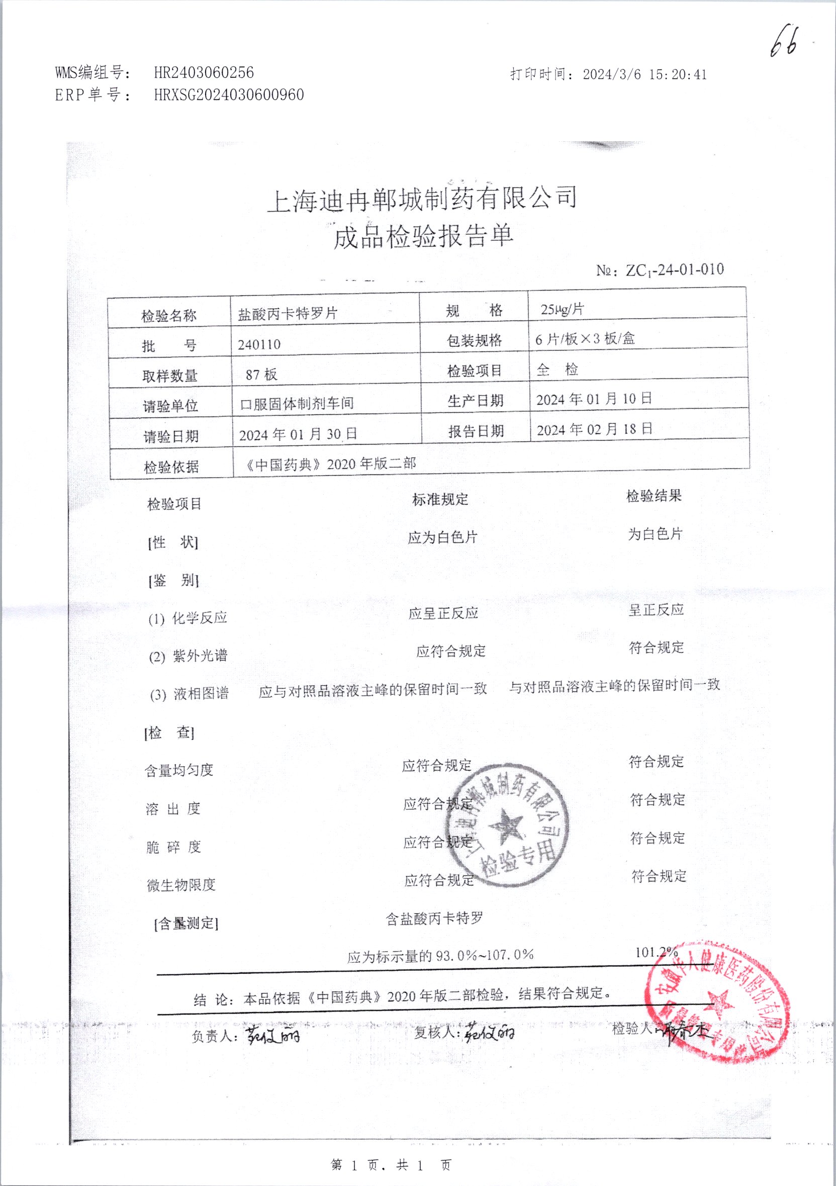| 鹽酸丙卡特羅片 | 25ug*18s | 220301 | 查看詳情 |