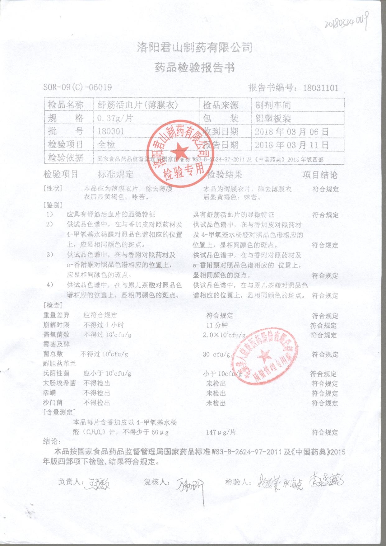 | 舒經(jīng)活血片 | 0.37g | 180301 | 查看詳情 |