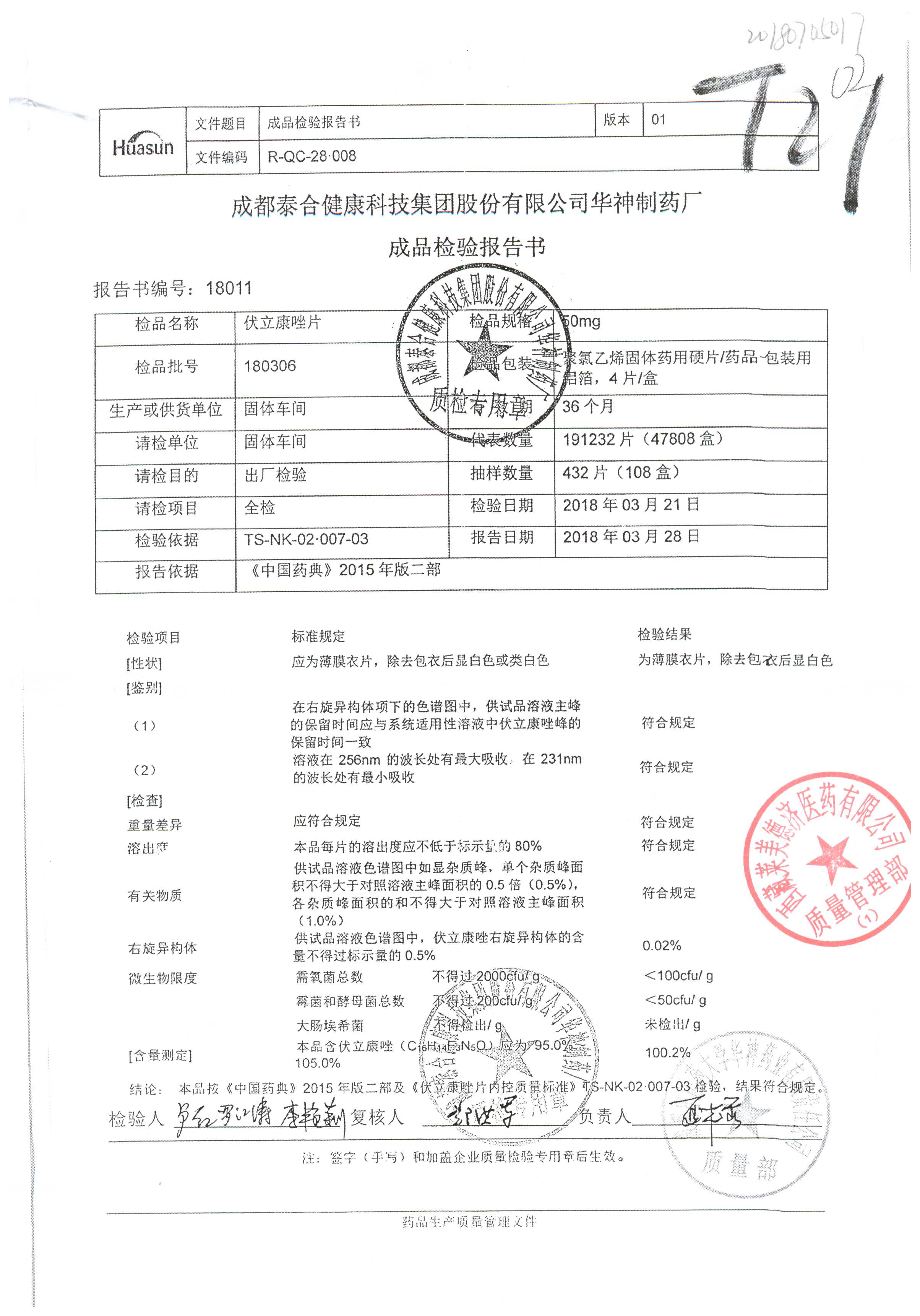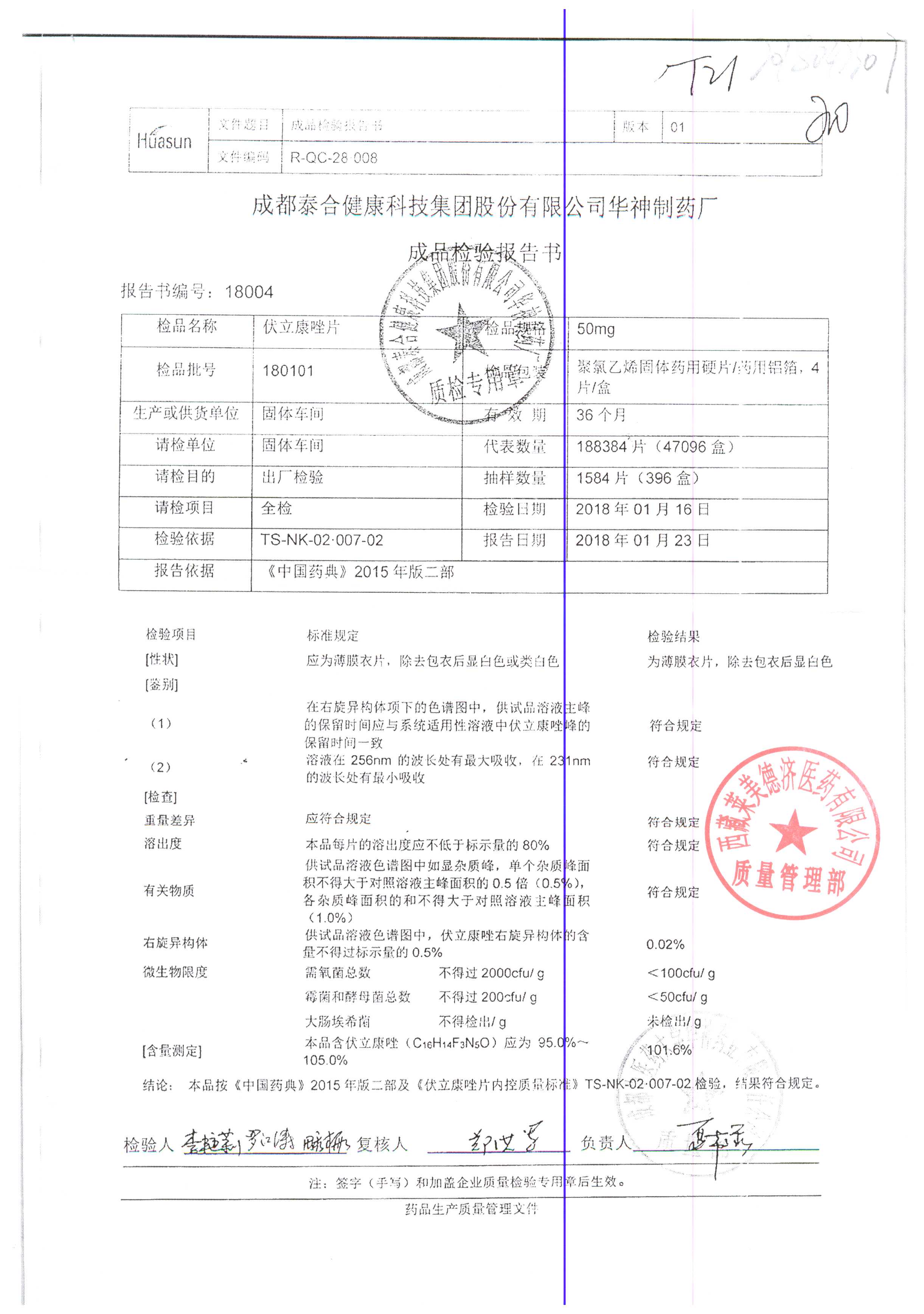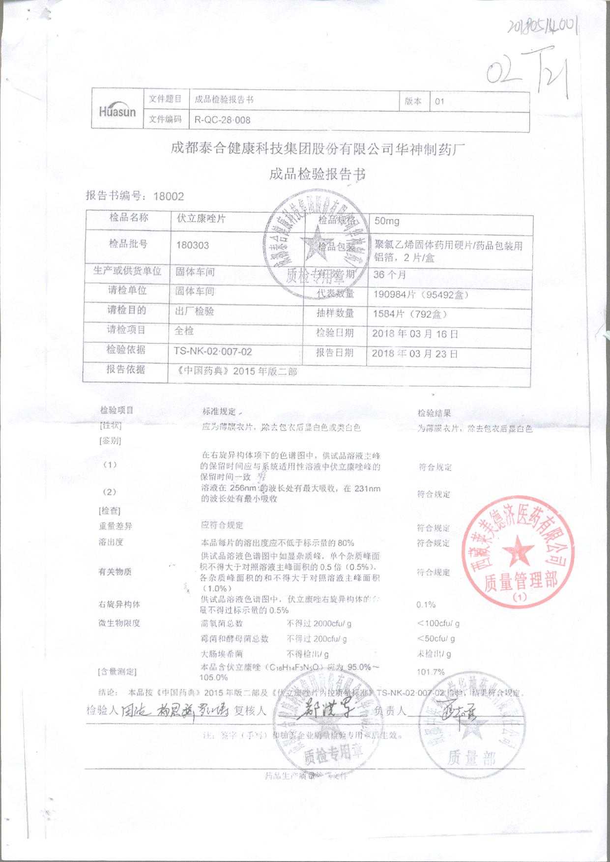 | 伏立康唑片 | 50mg | 180602 | 查看詳情 |