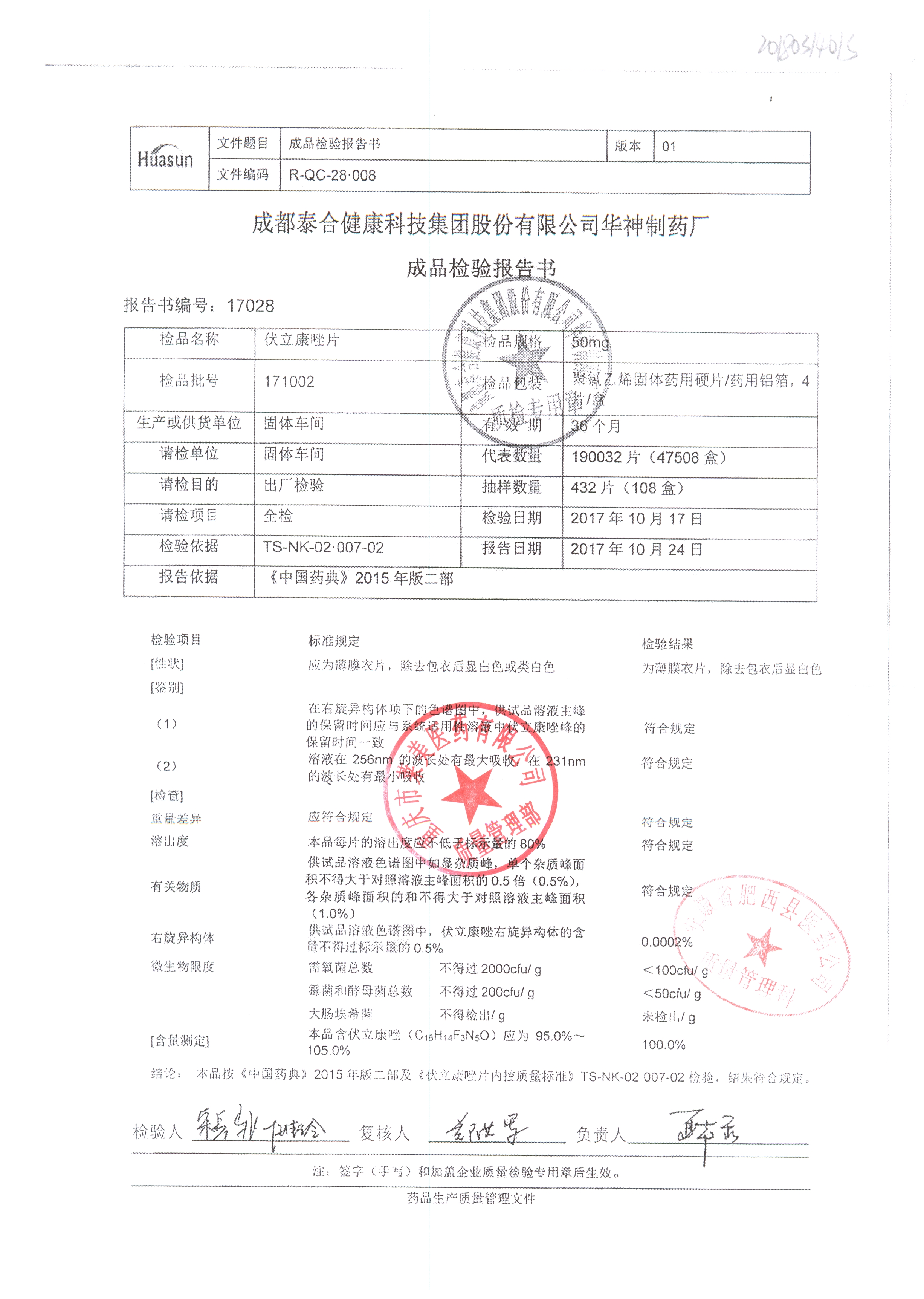 | 伏立康唑片 | 50mg | 171006 | 查看詳情 |