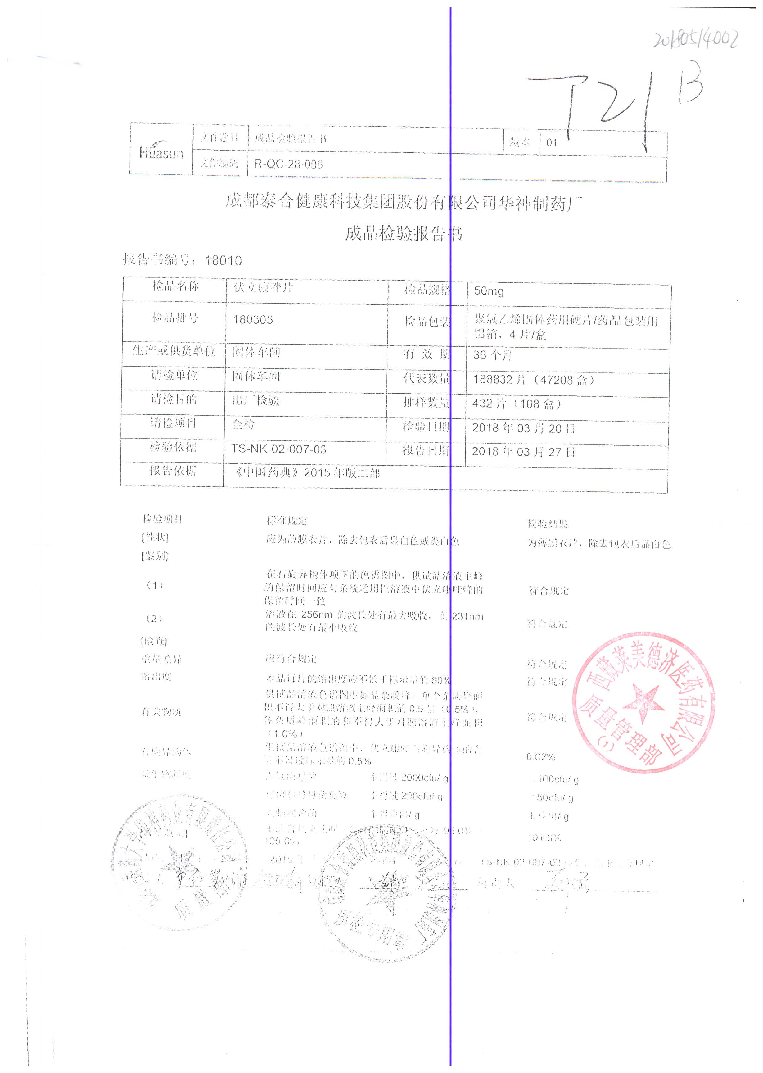 | 名稱 | 規(guī)格 | 批號 | 藥檢報告 |