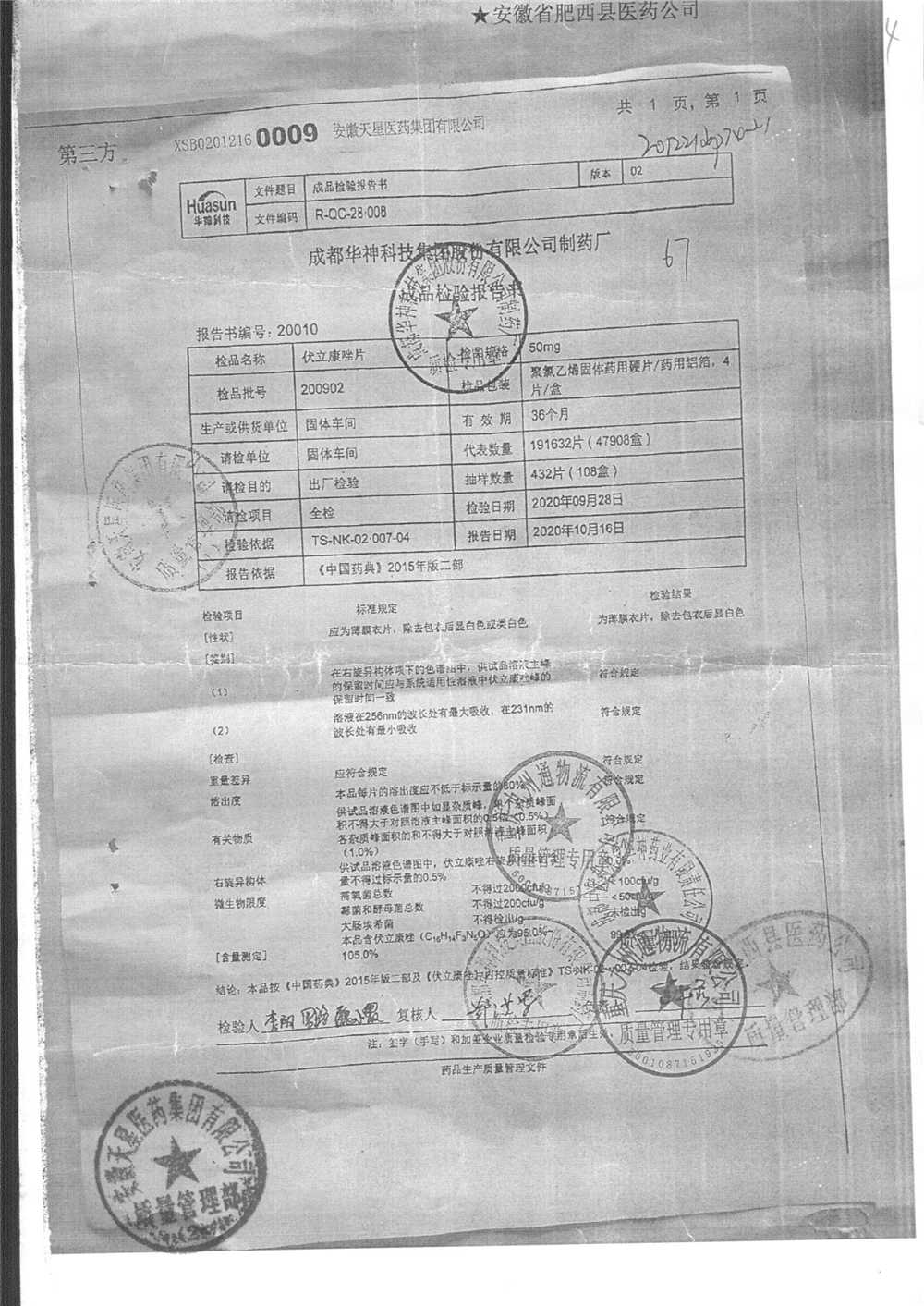 | 伏立康唑片 | 50mg | 200902 | 查看詳情 |