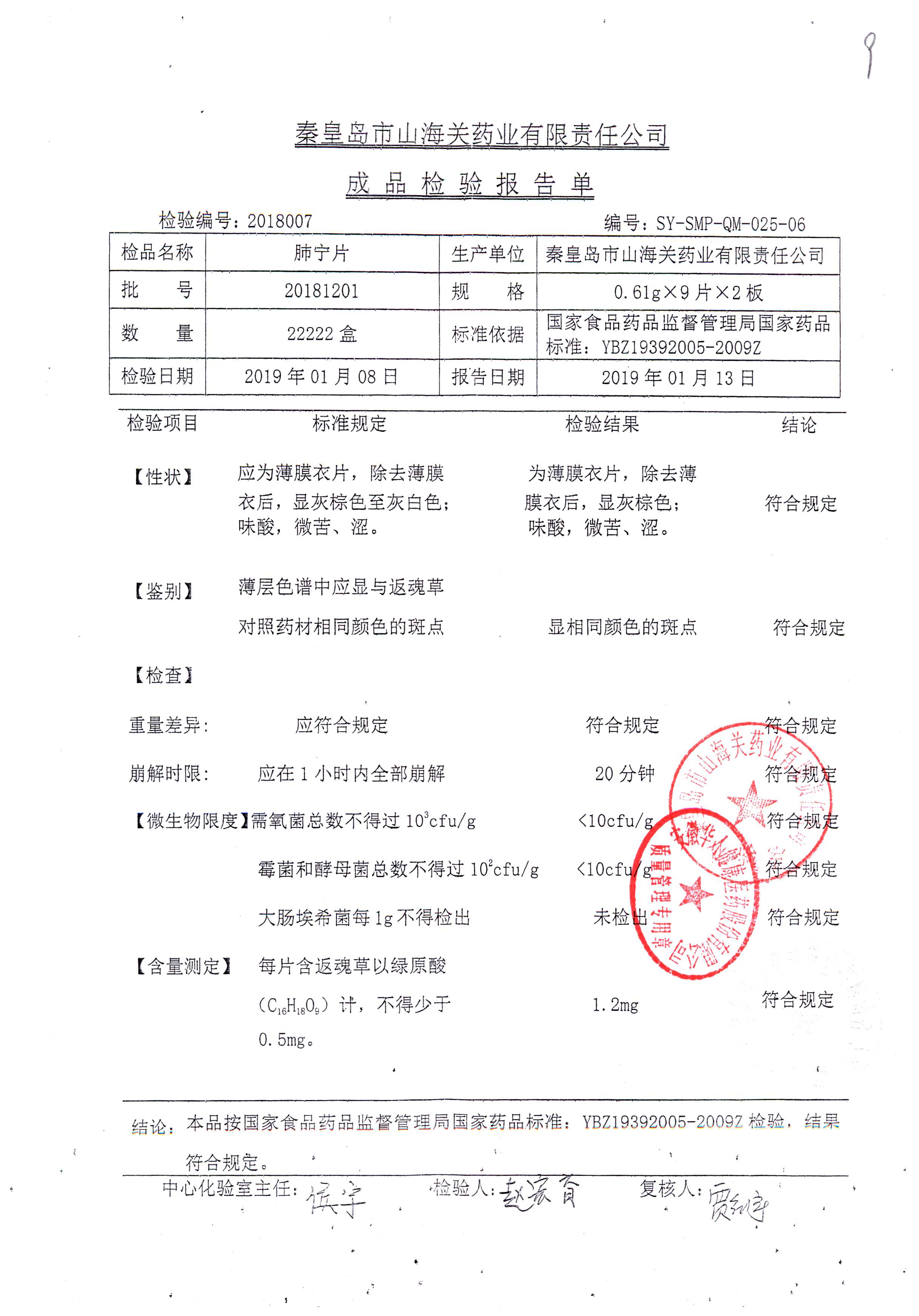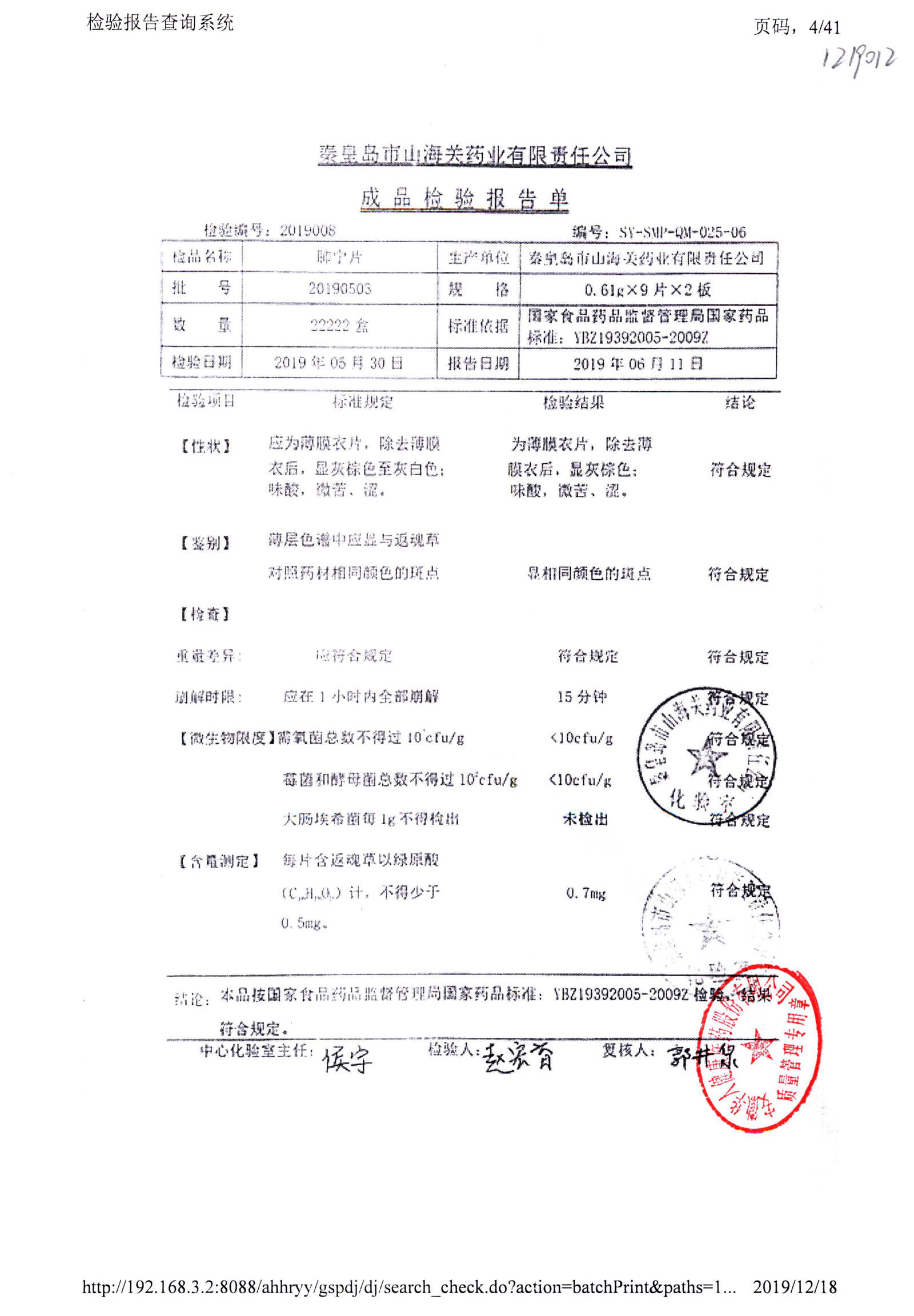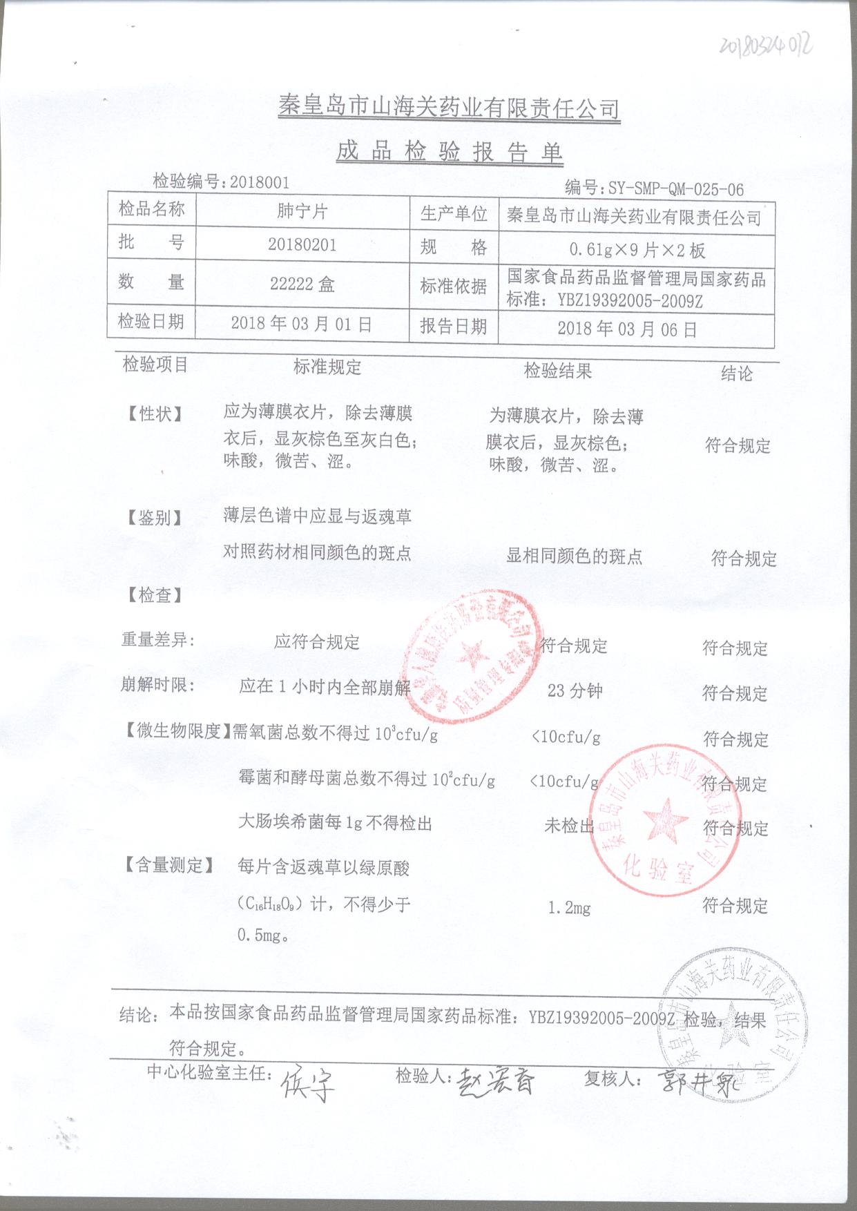 | 肺寧片 | 0.61g*18s | 20181203 | 查看詳情 |