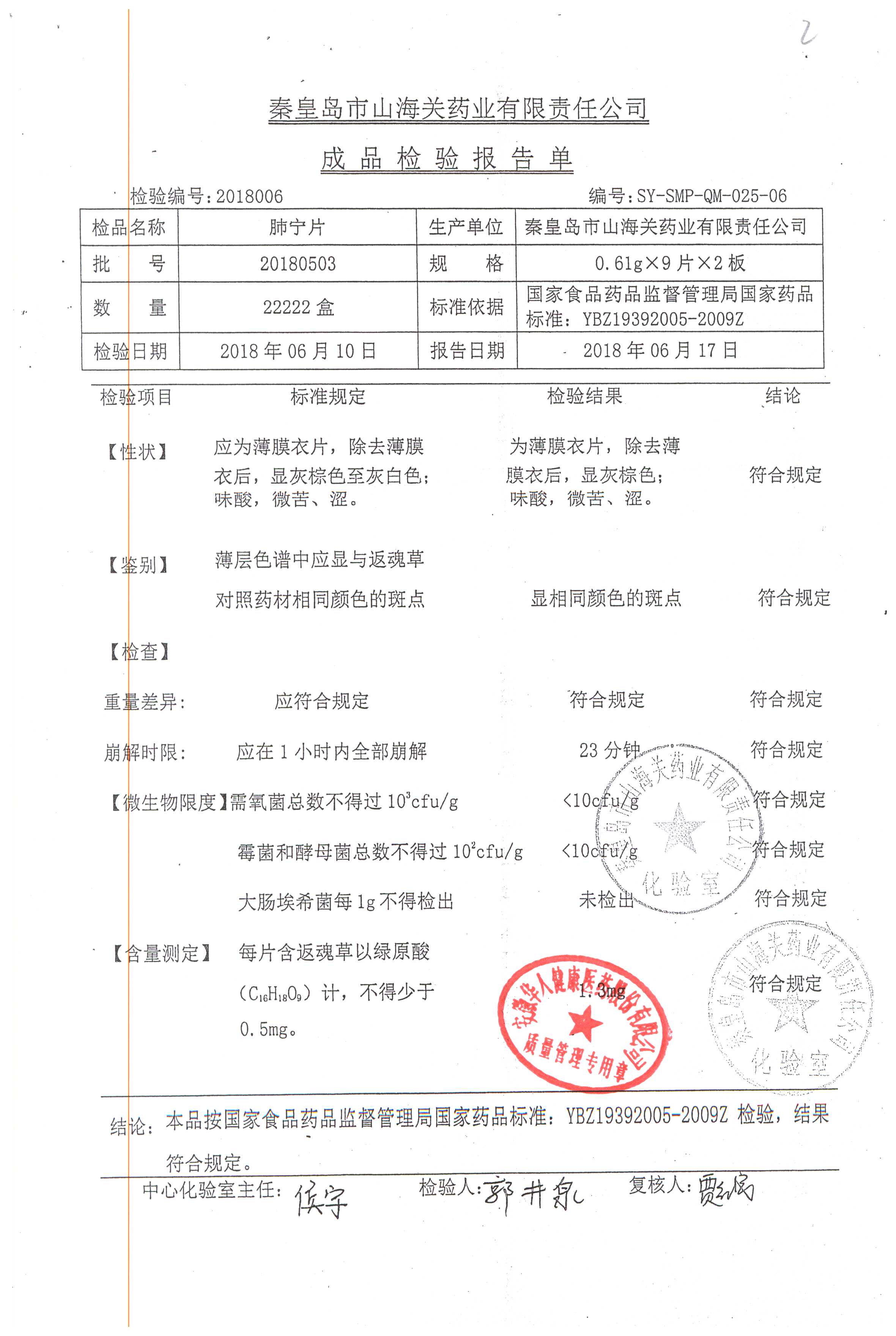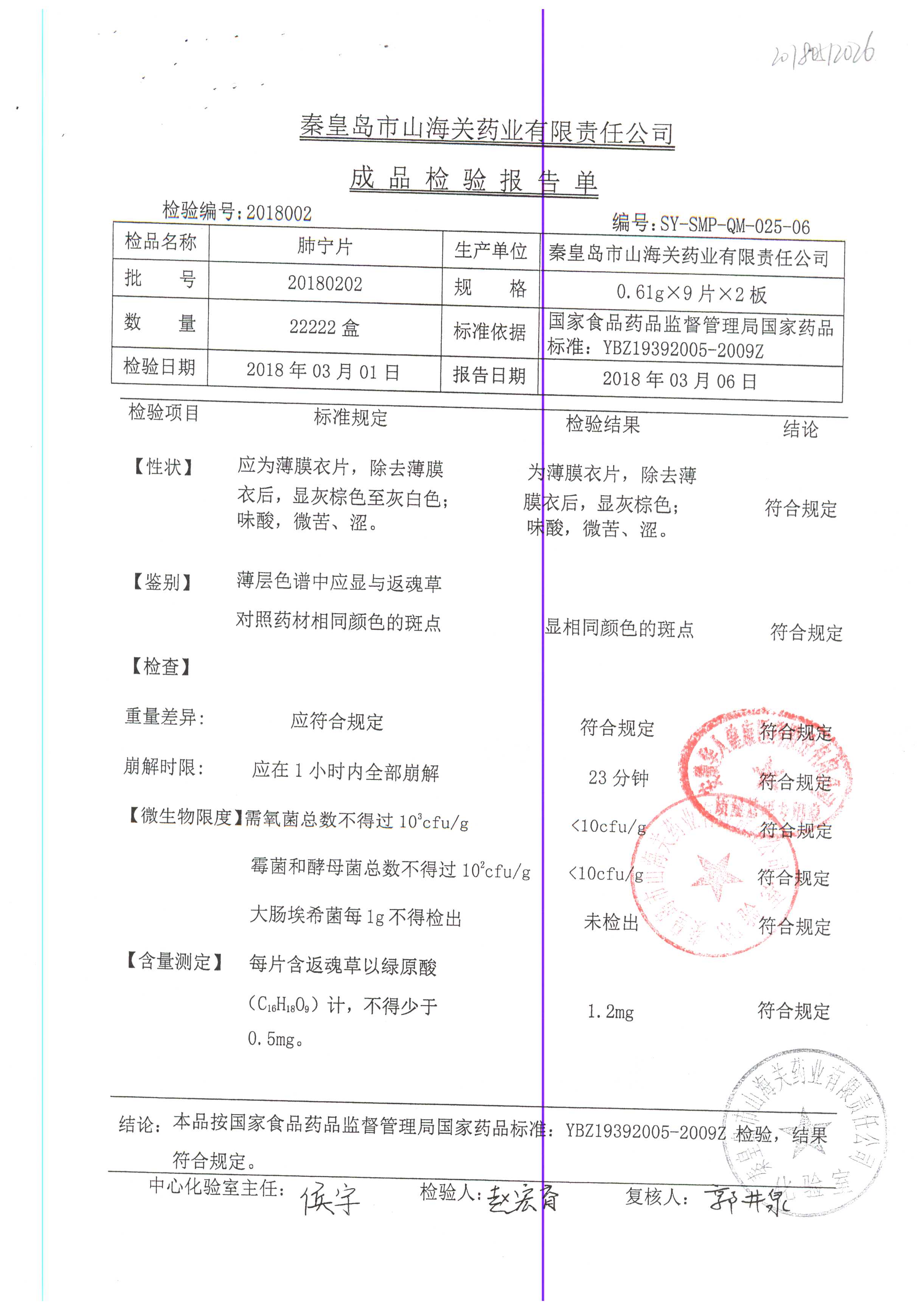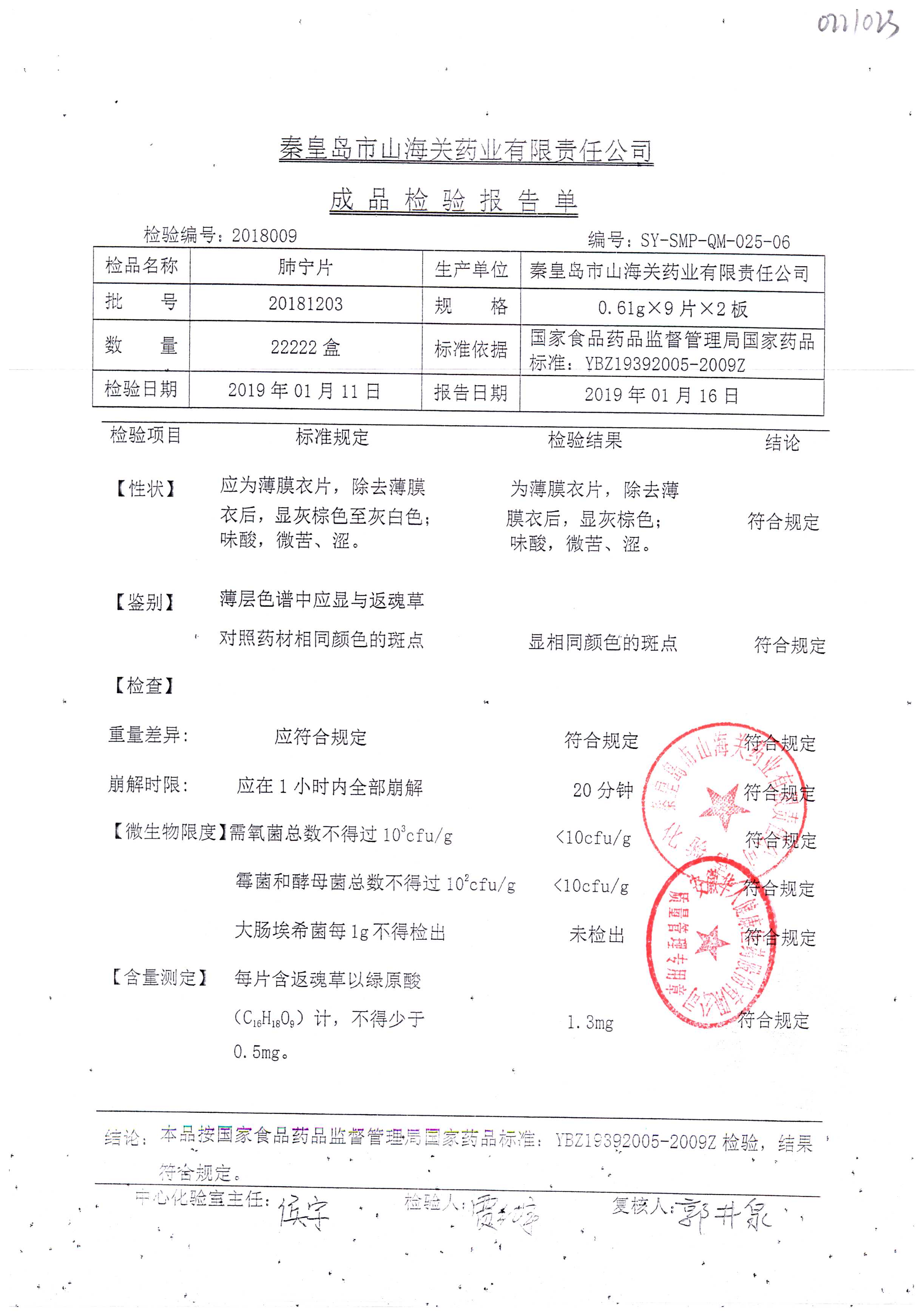 | 肺寧片 | 0.61g*18s | 20181203 | 查看詳情 |