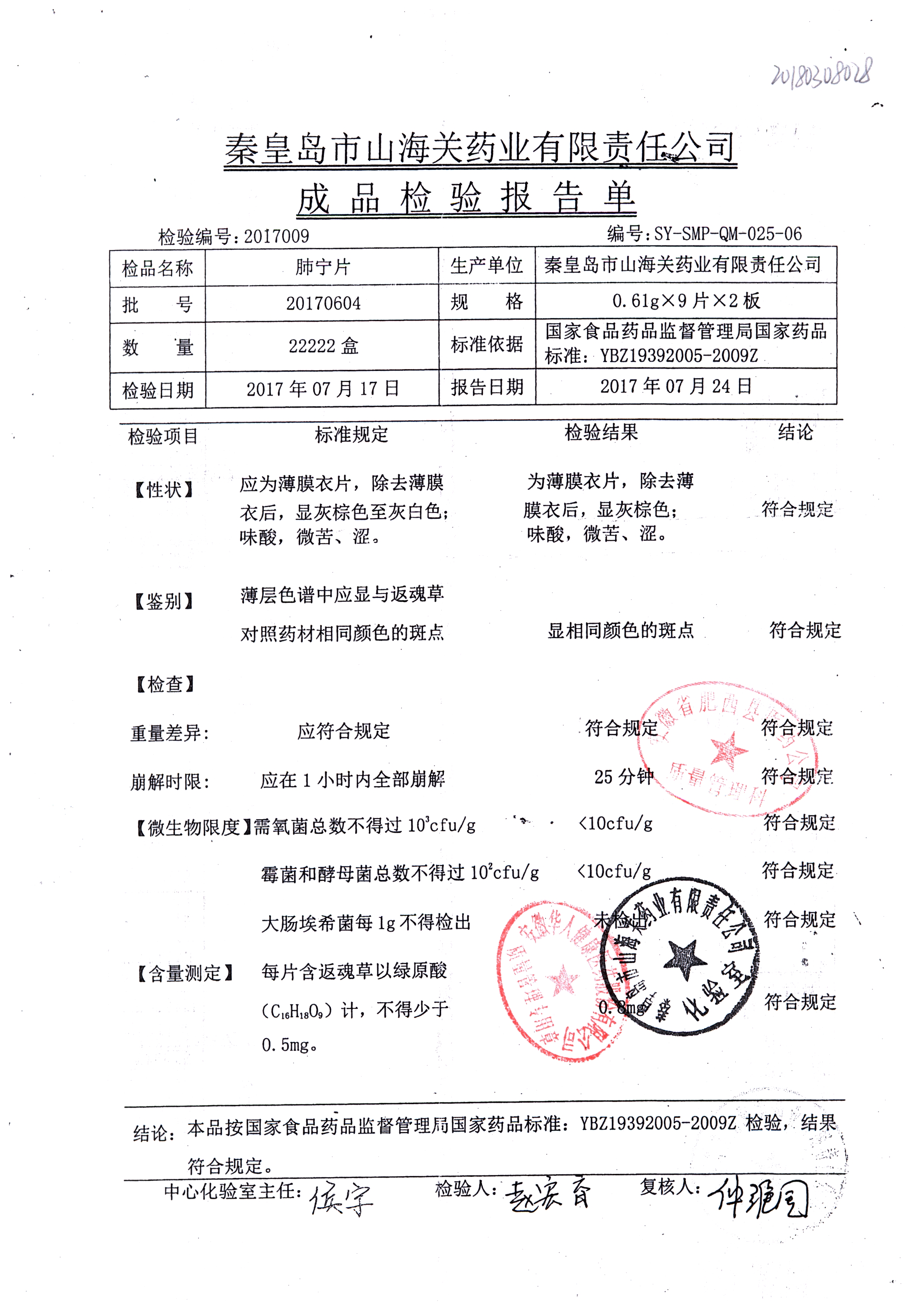| 肺寧片 | 0.61g*18s | 20180202 | 查看詳情 |