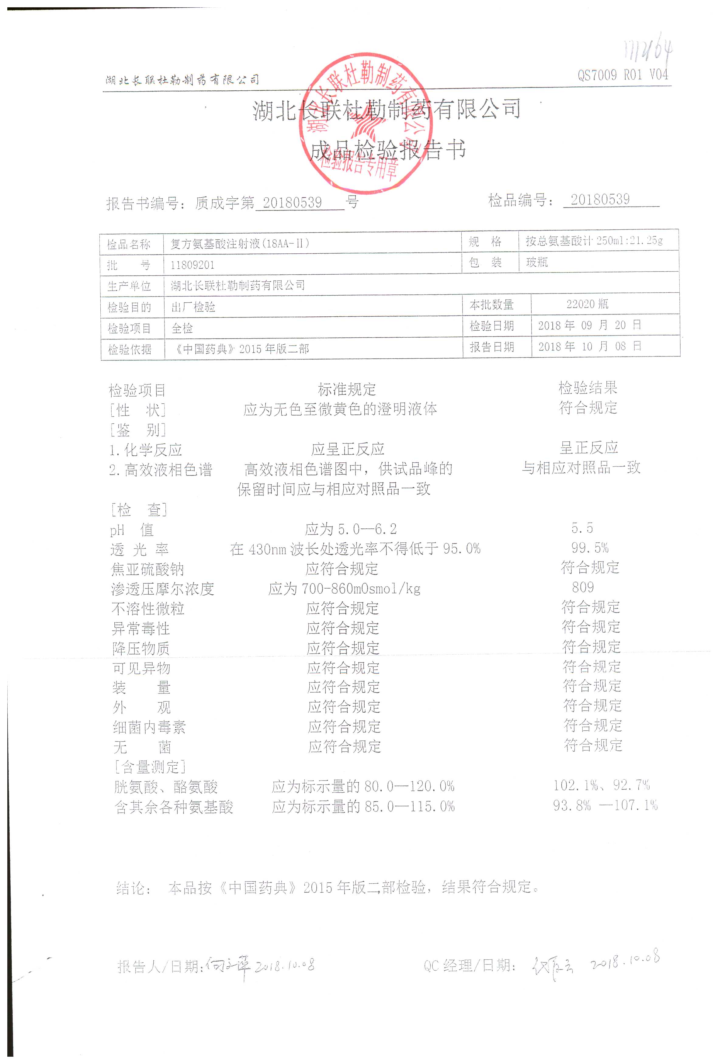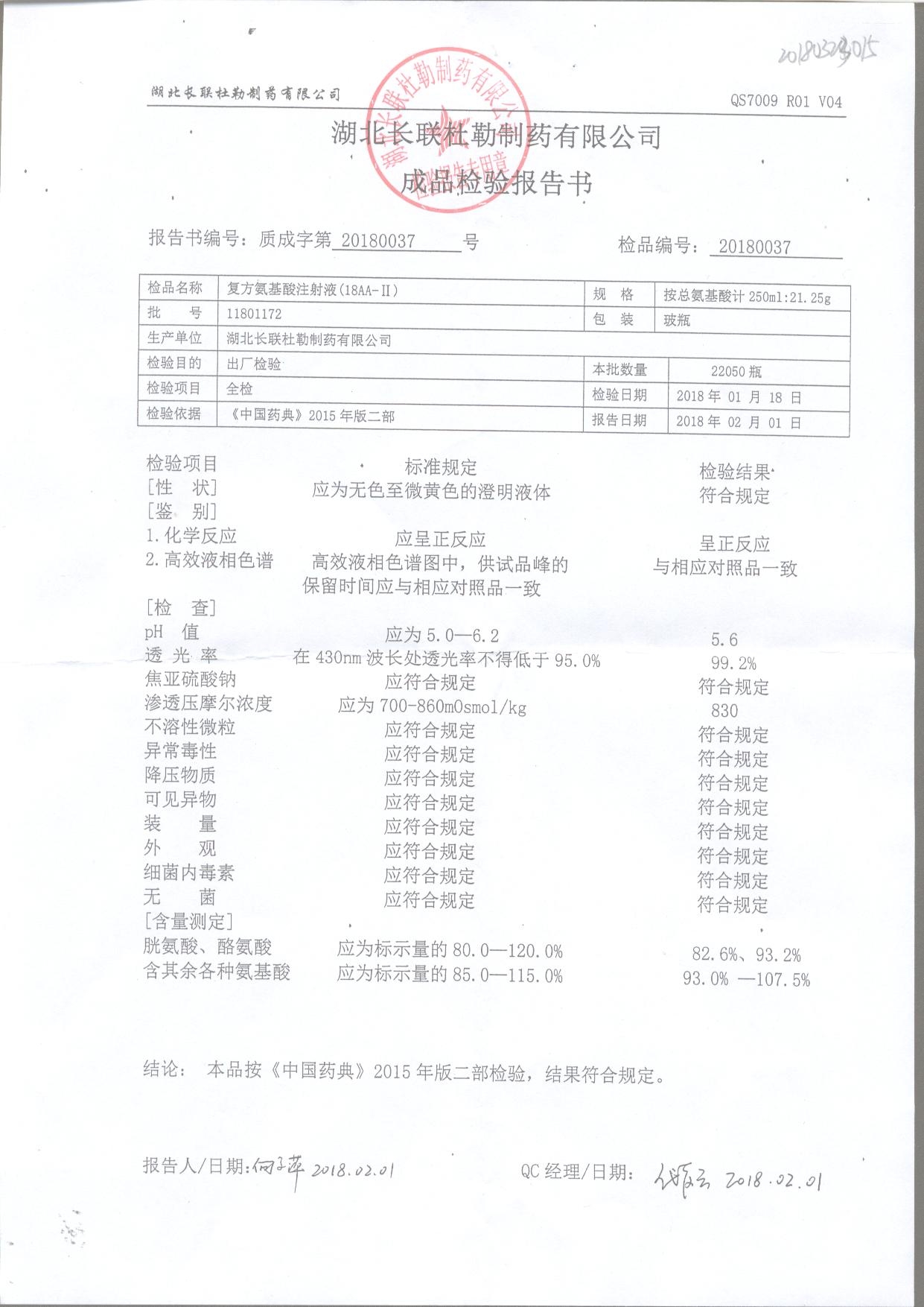 | 復(fù)方氨基酸注射液 | 250ml:21.25g | 11801172 | 查看詳情 |