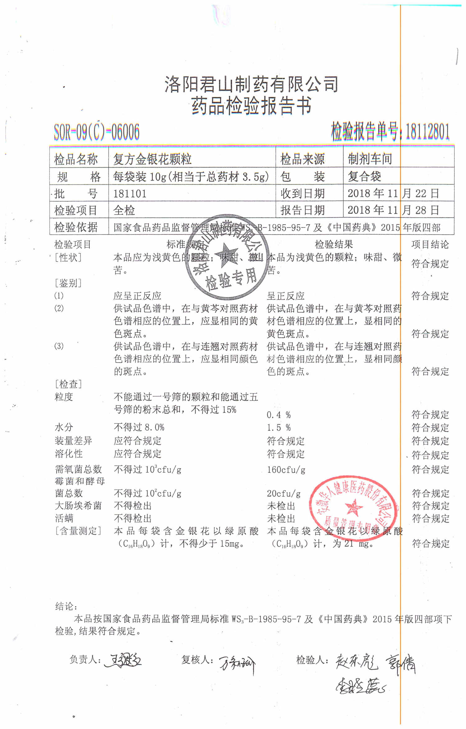 | 復方金銀花顆粒 | 10g | 181101 | 查看詳情 |
