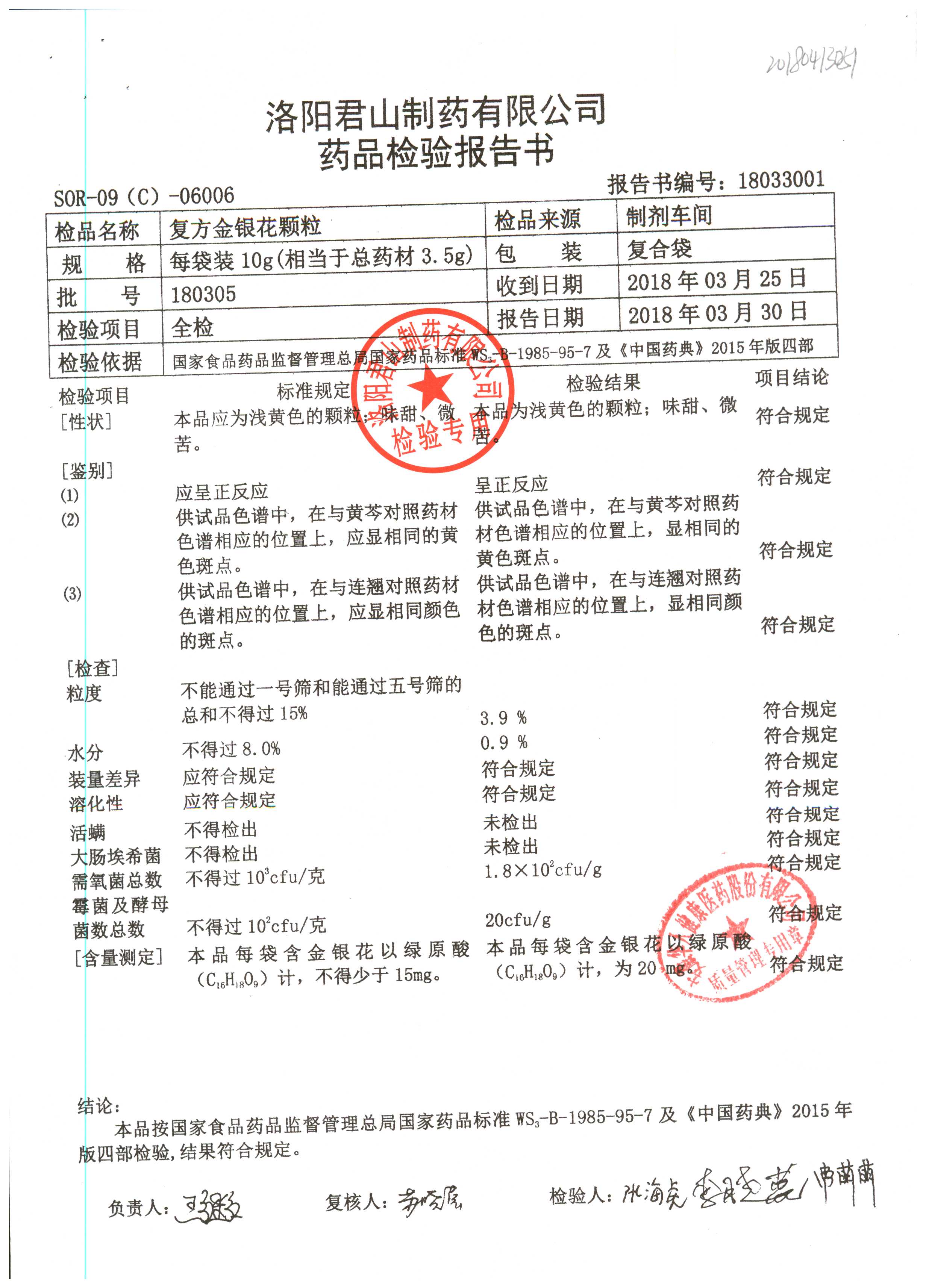 | 復方金銀花顆粒 | 10g | 180305 | 查看詳情 |