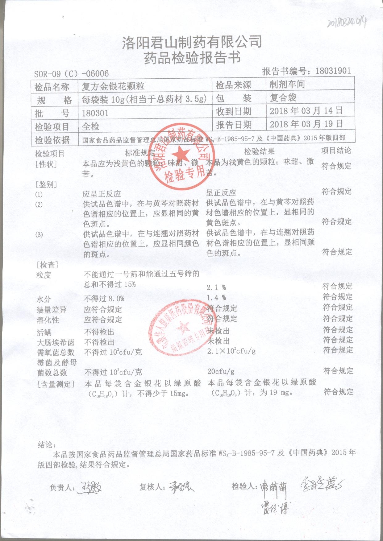 | 復方金銀花顆粒 | 10g | 180301 | 查看詳情 |