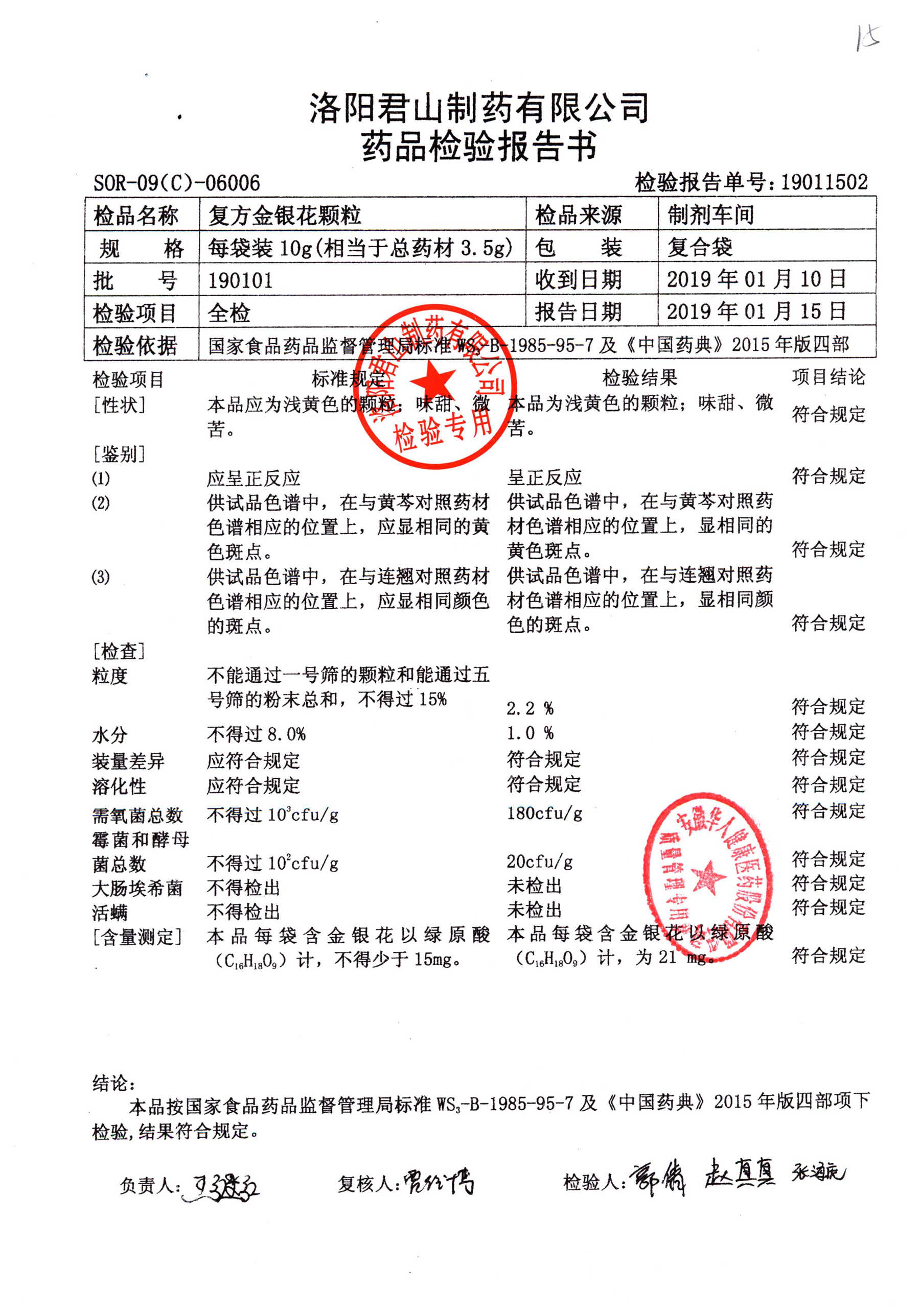 | 復方金銀花顆粒 | 10g | 190106 | 查看詳情 |