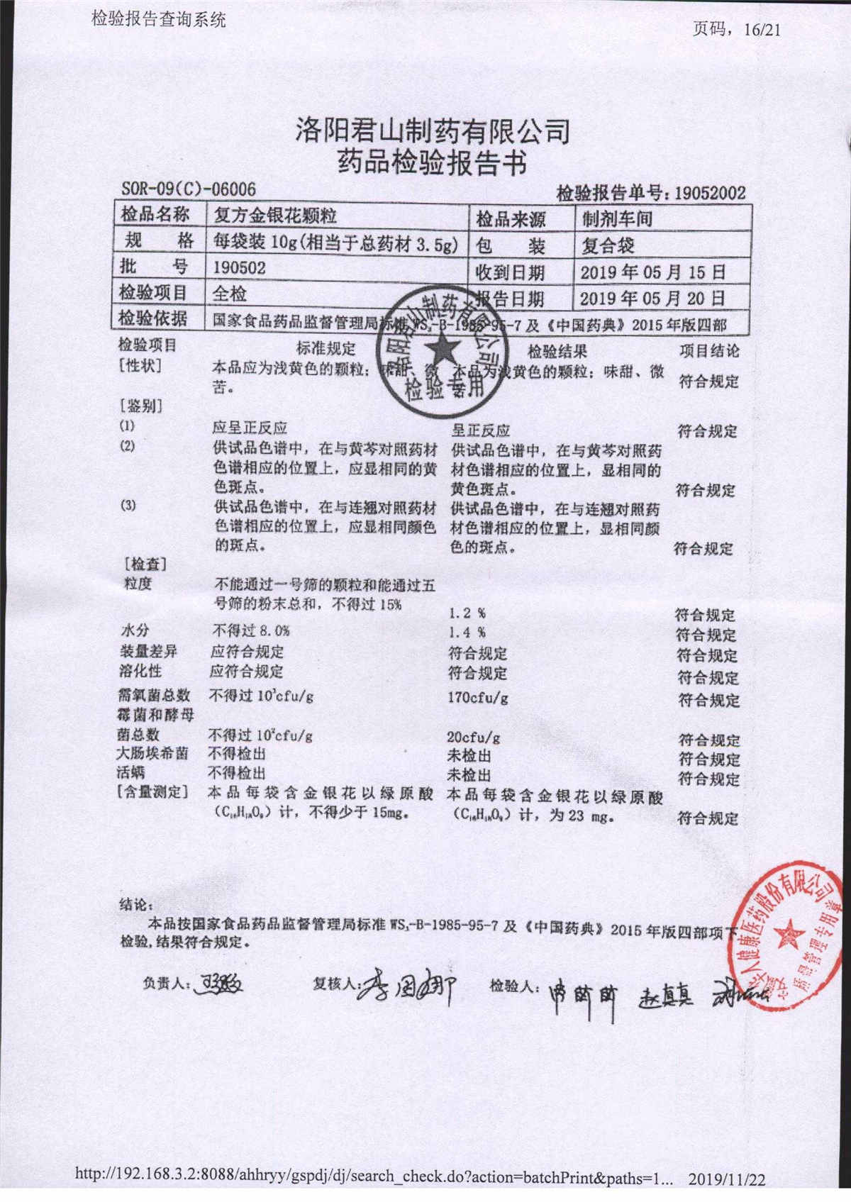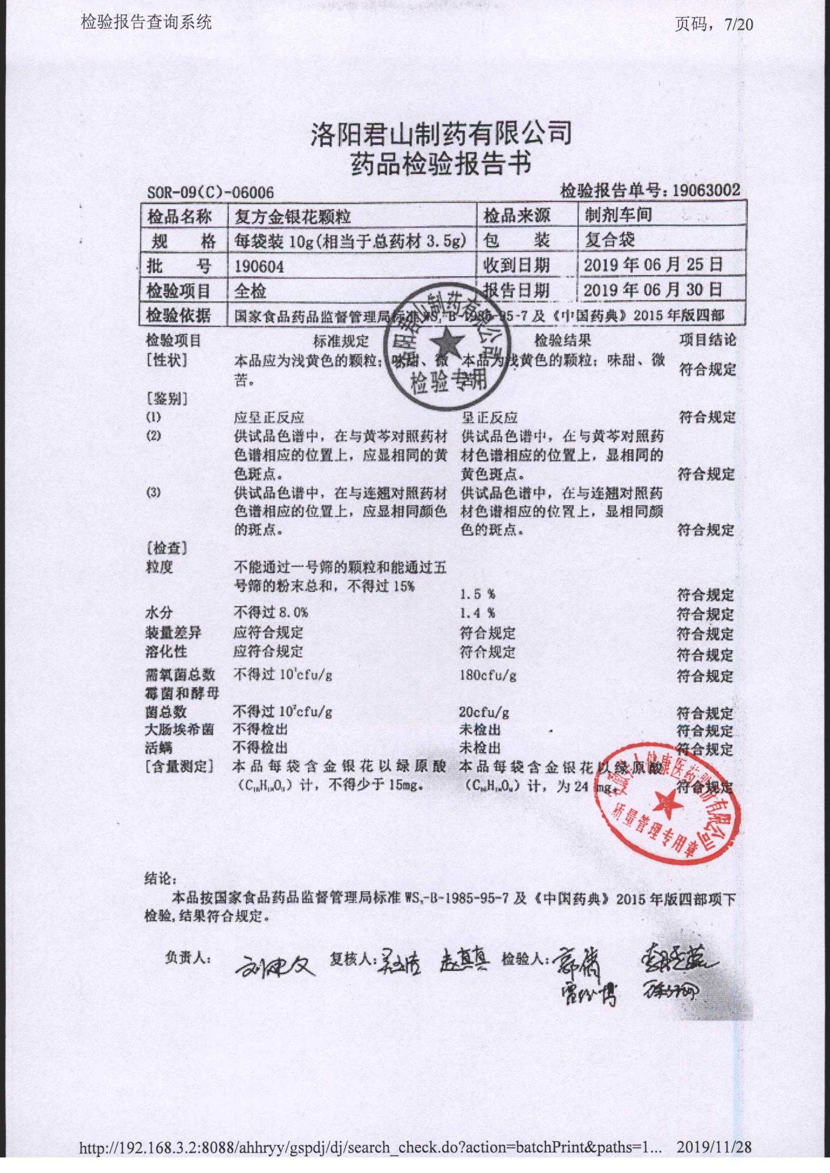 | 復方金銀花顆粒 | 10g | 190604 | 查看詳情 |