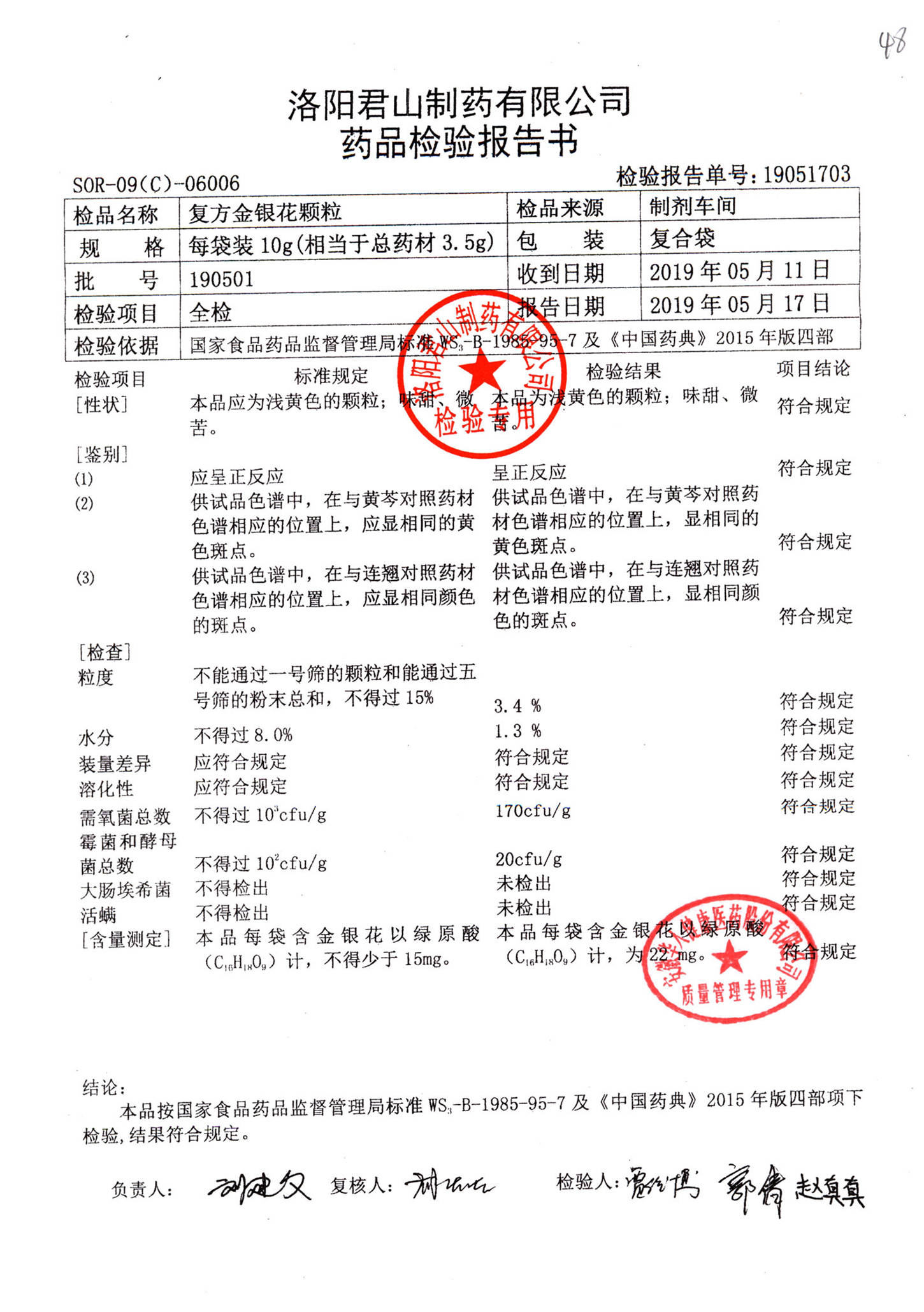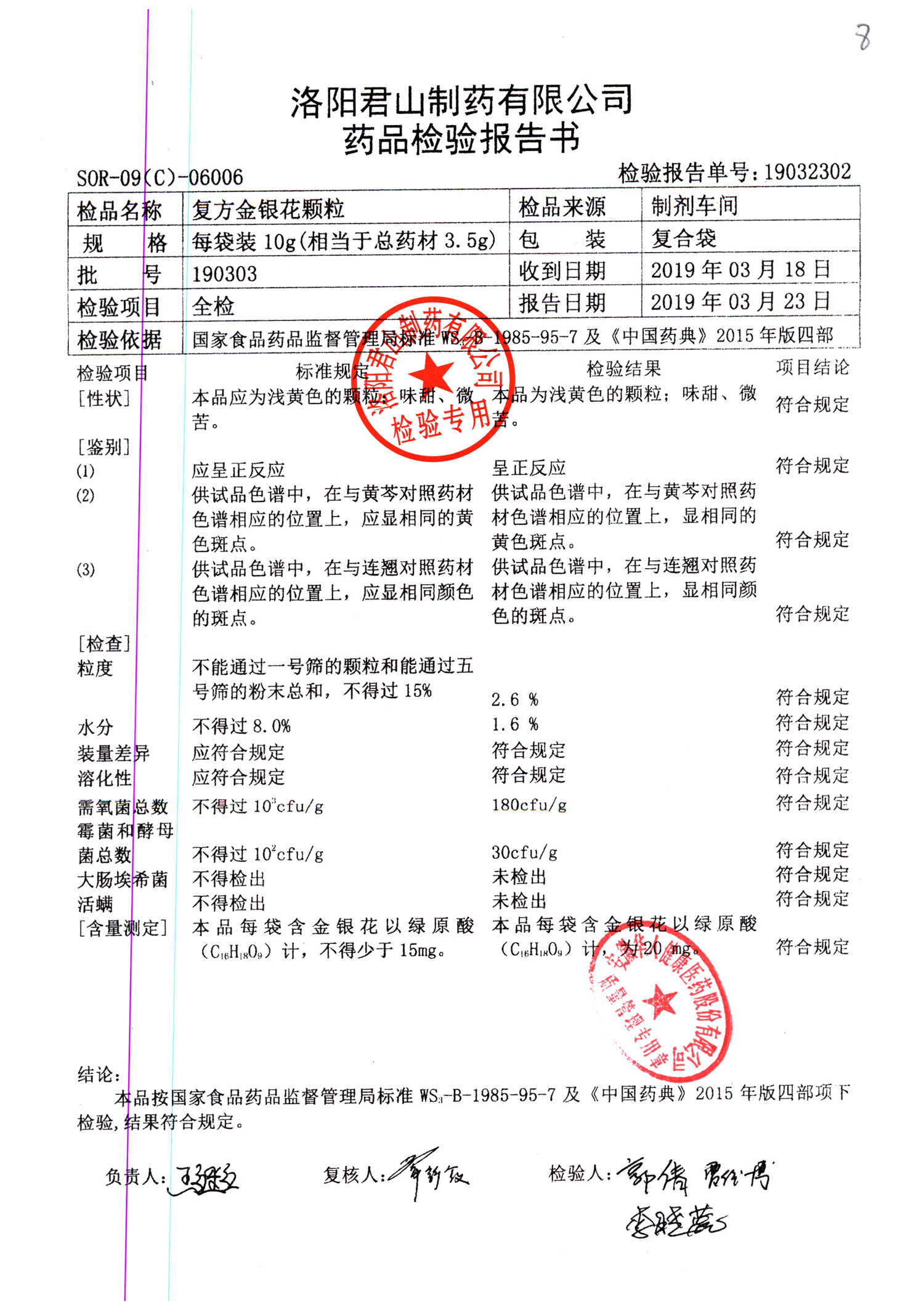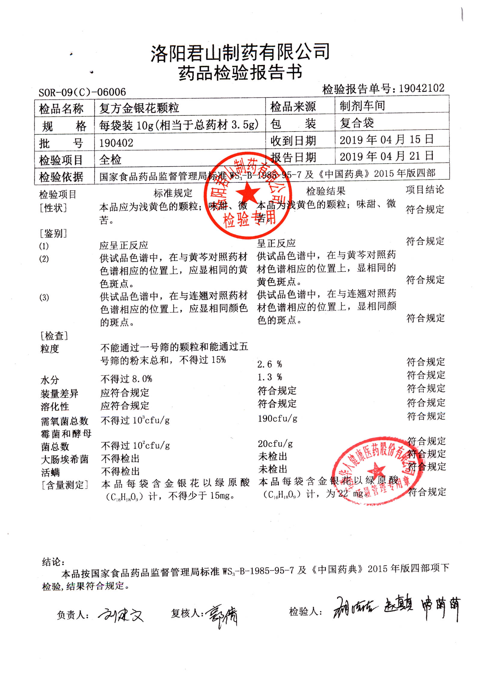 | 復方金銀花顆粒 | 10g | 190502 | 查看詳情 |