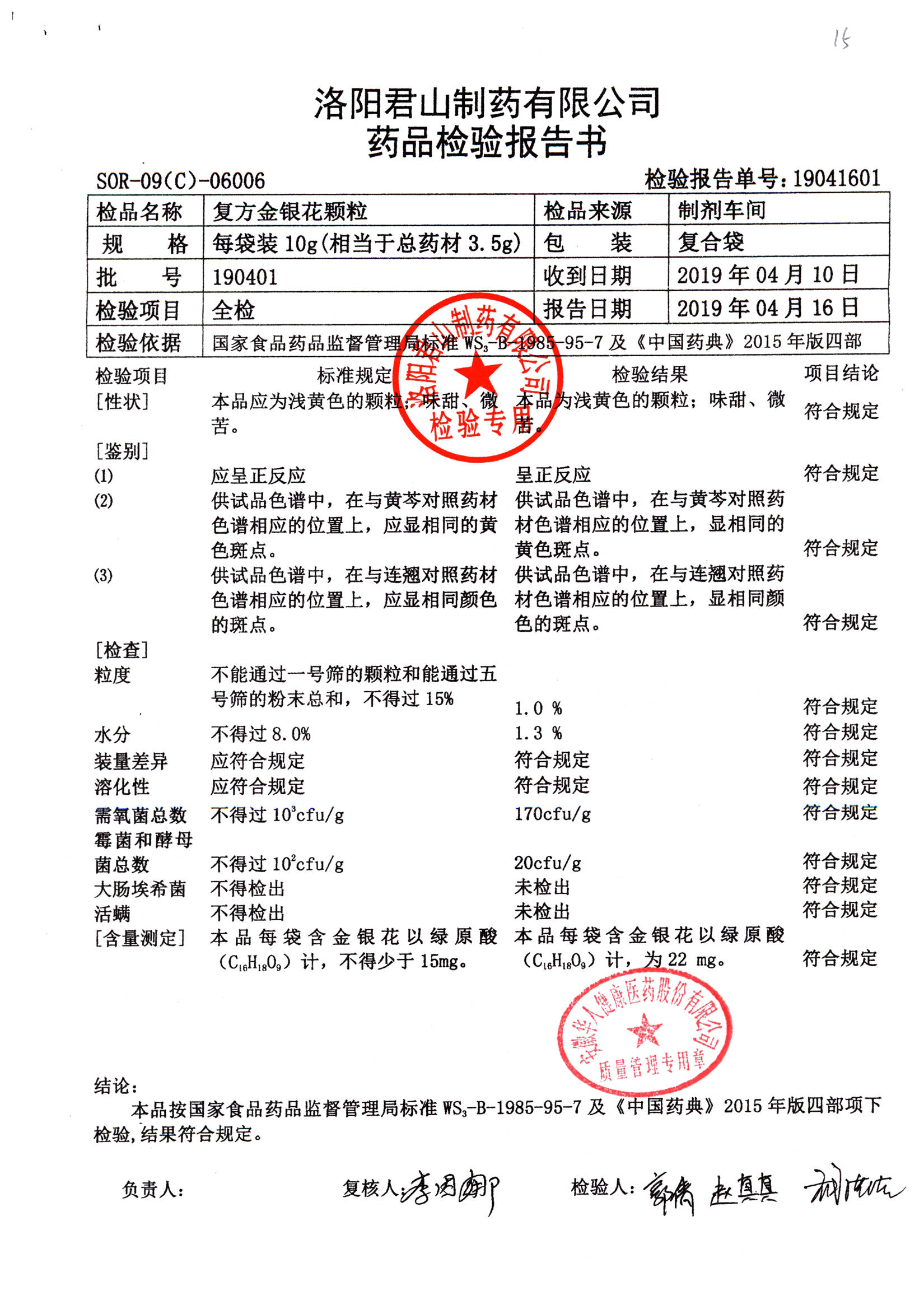| 復方金銀花顆粒 | 10g | 190401 | 查看詳情 |