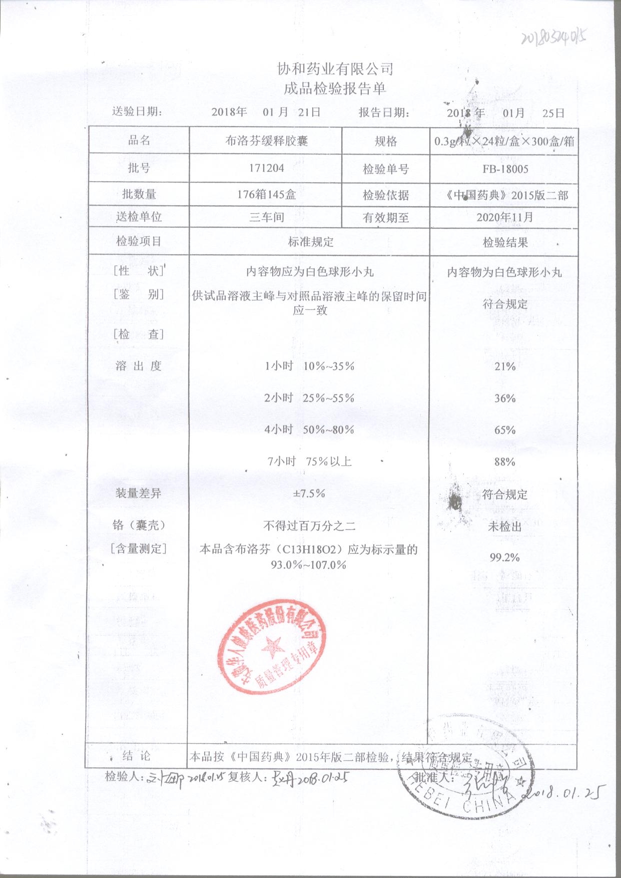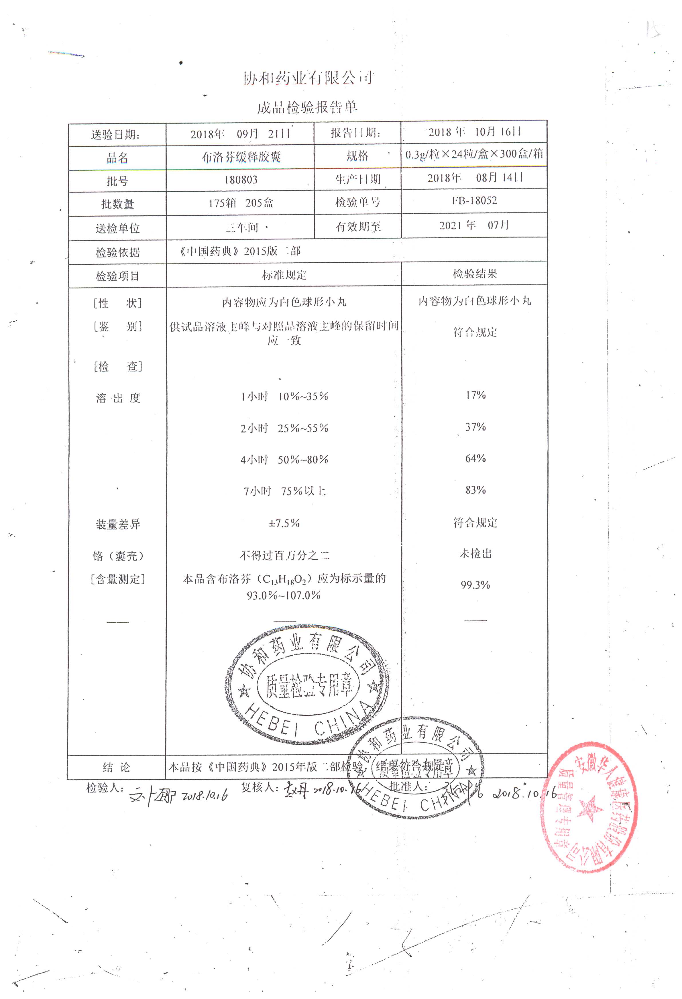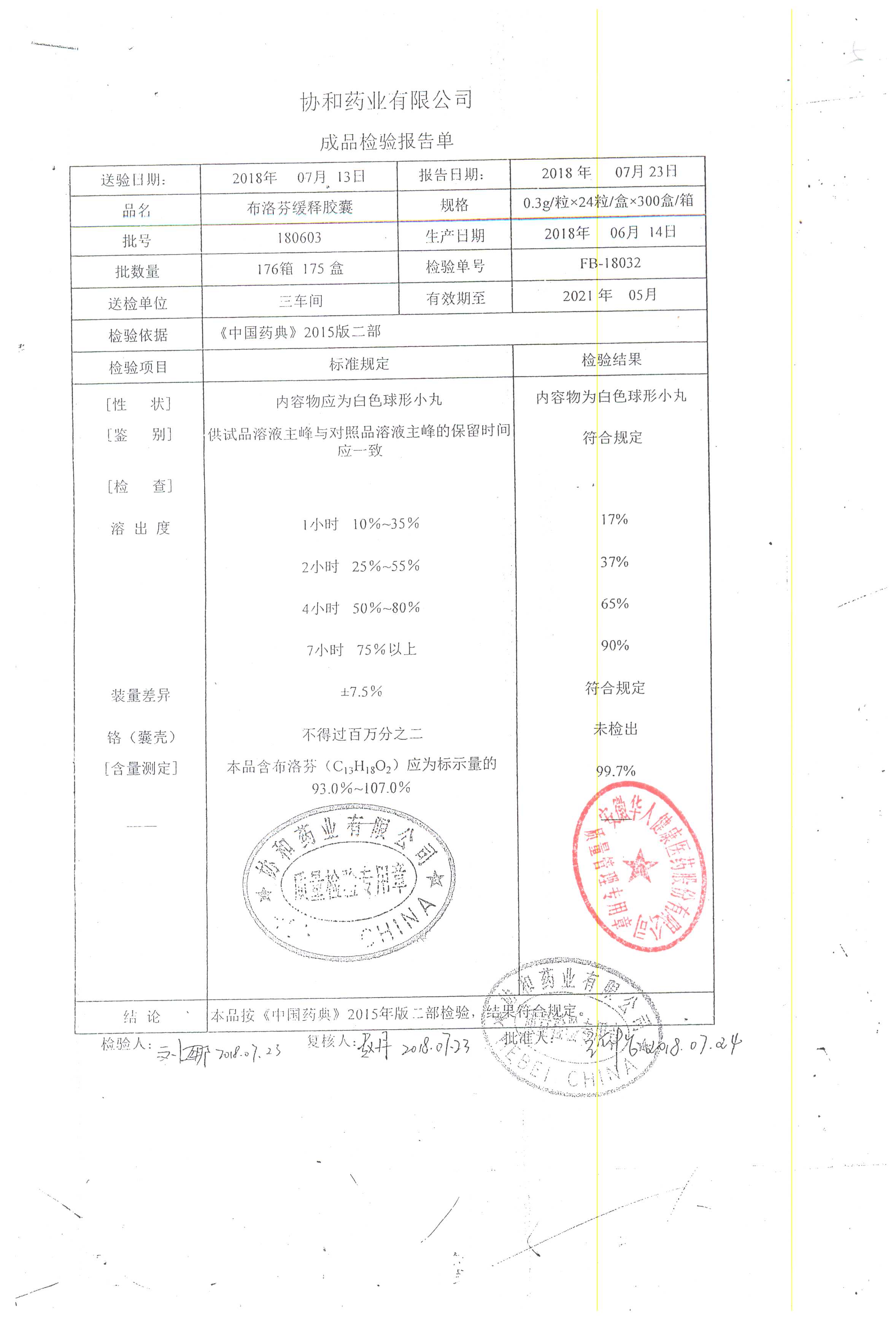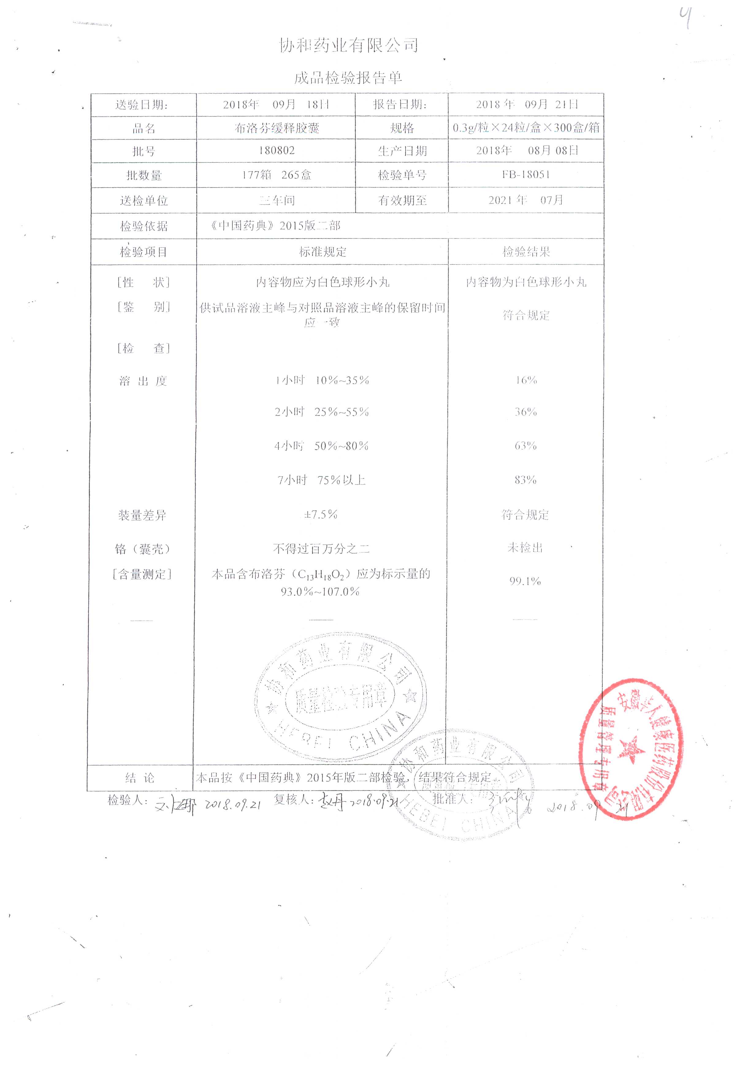 | 布洛芬緩釋膠囊 | 0.3g*24s | 180805 | 查看詳情 |