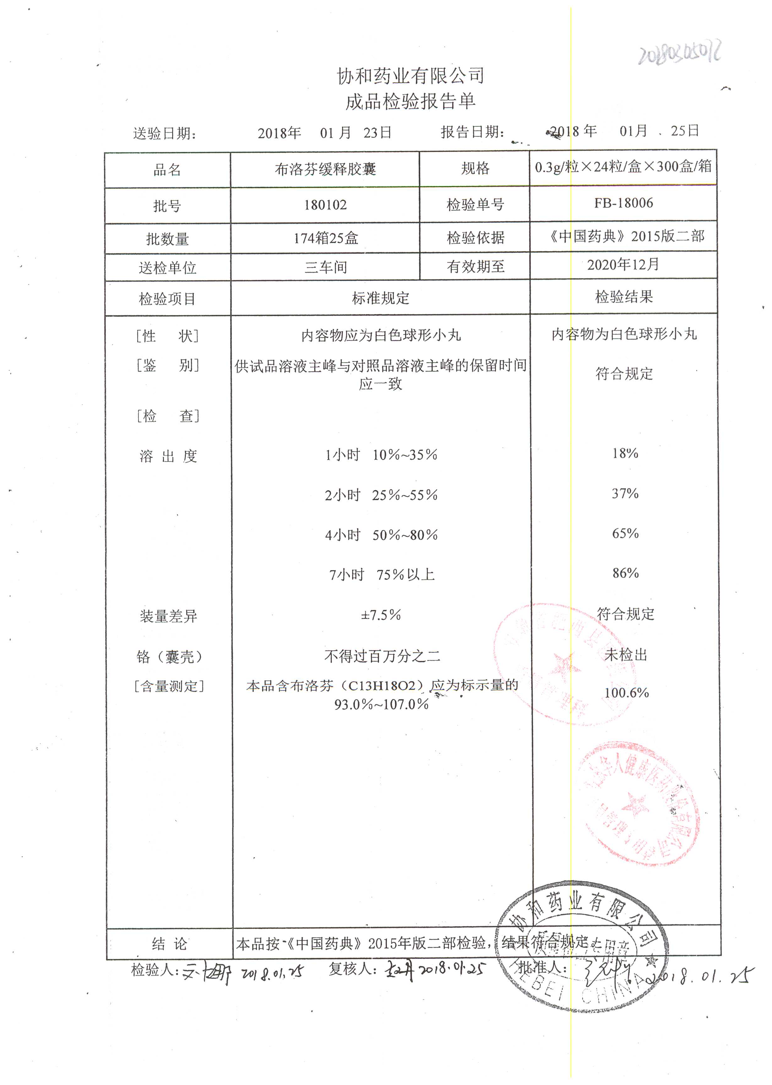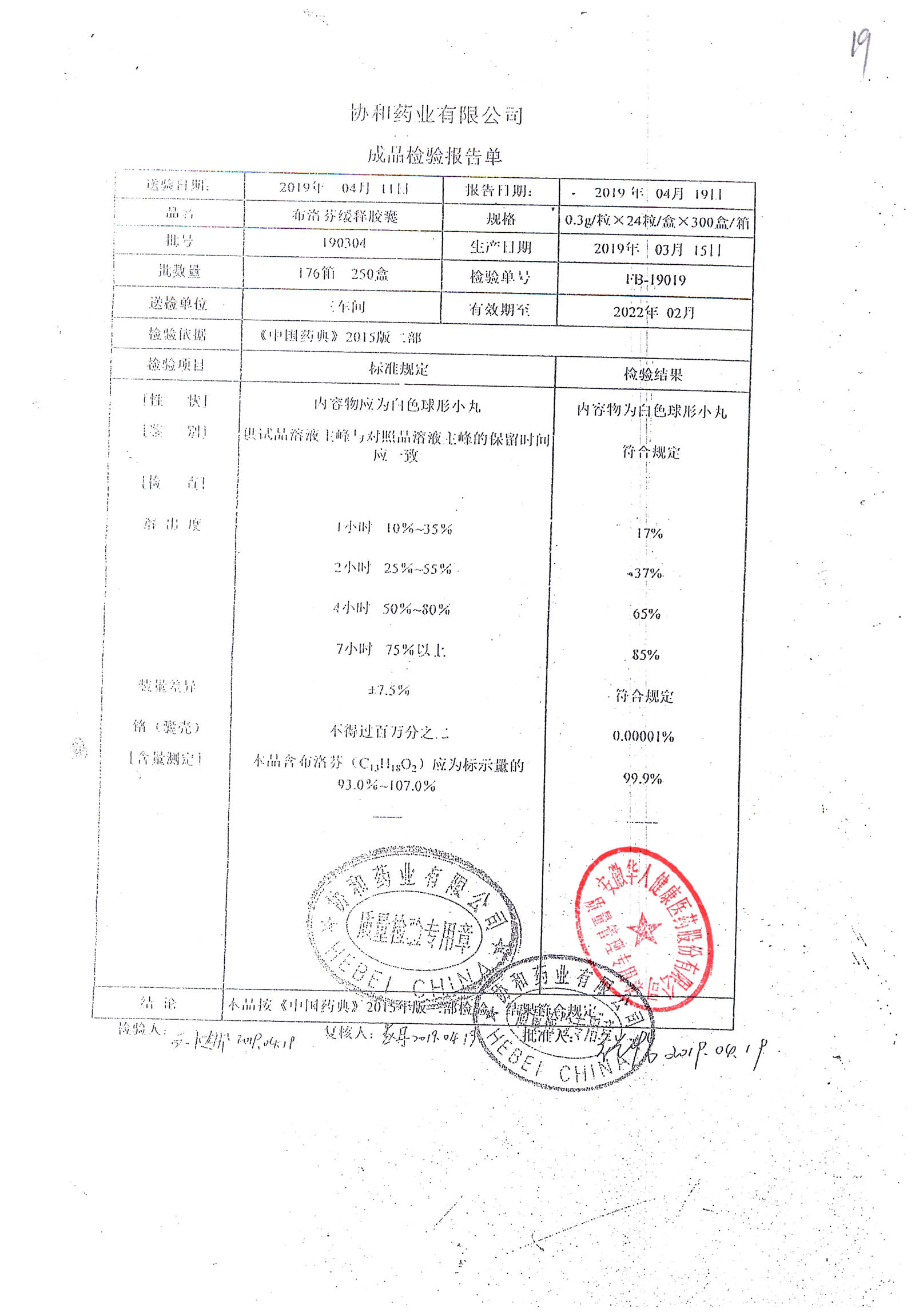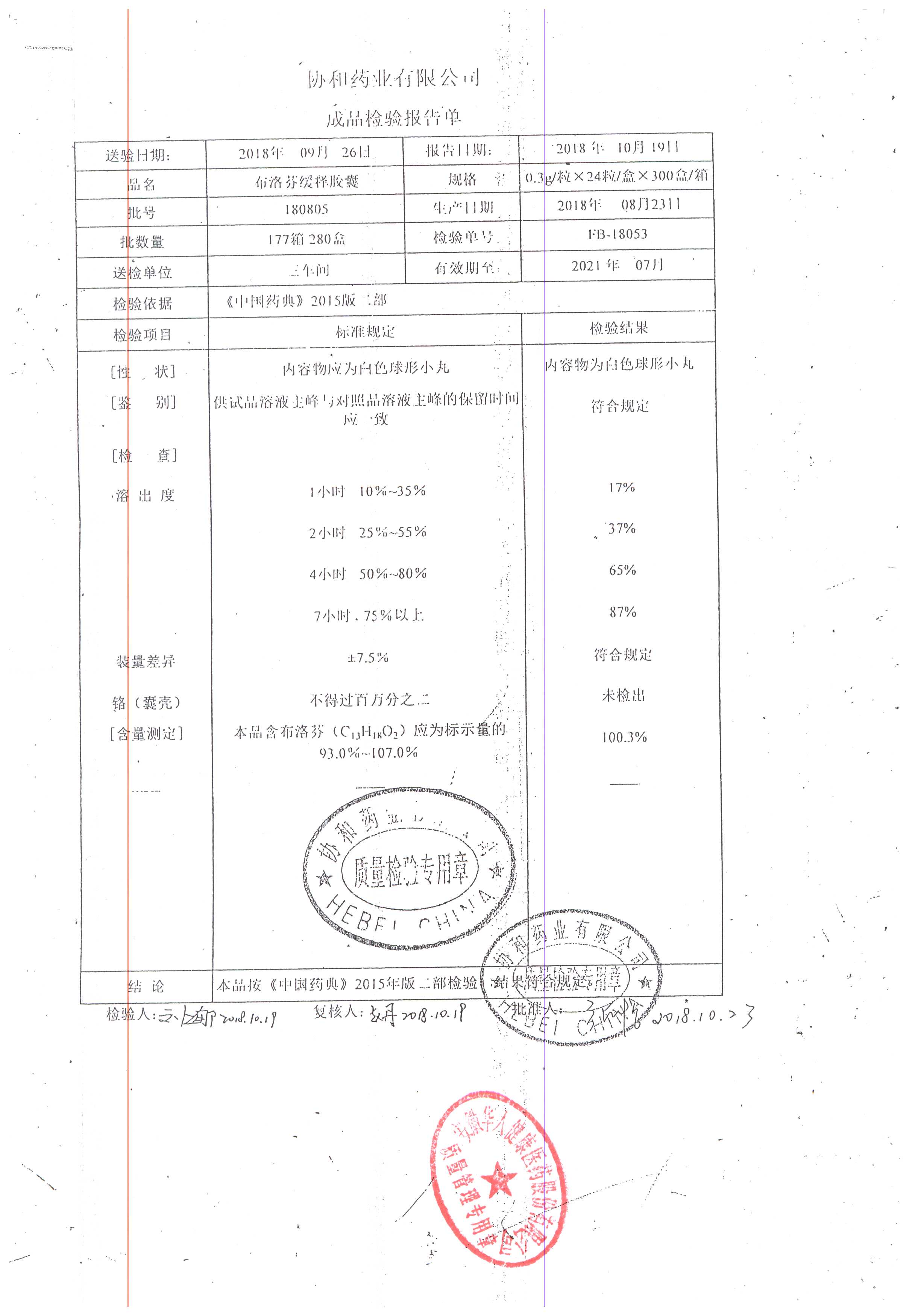 | 布洛芬緩釋膠囊 | 0.3g*24s | 191207 | 查看詳情 |