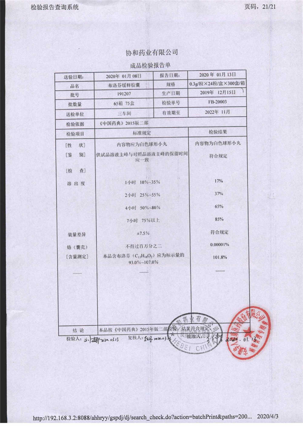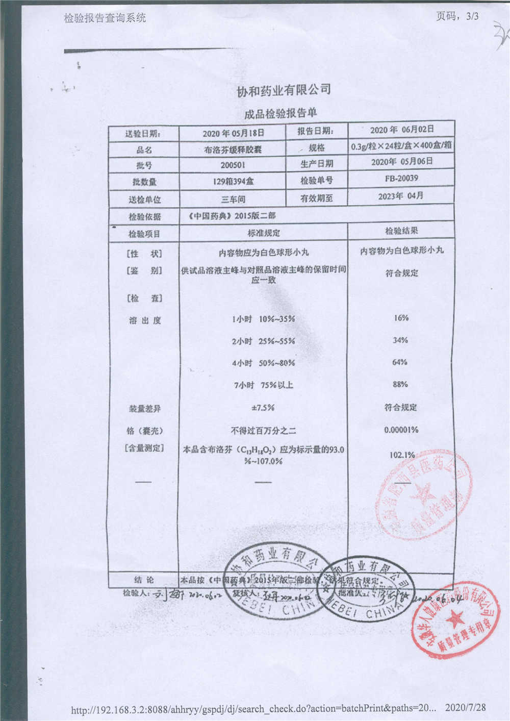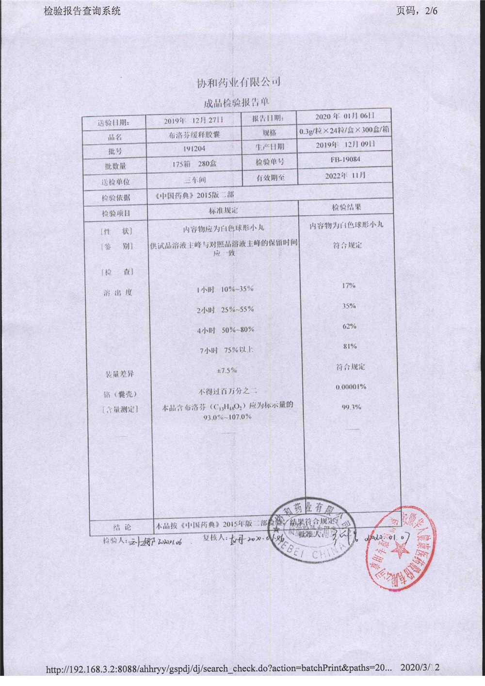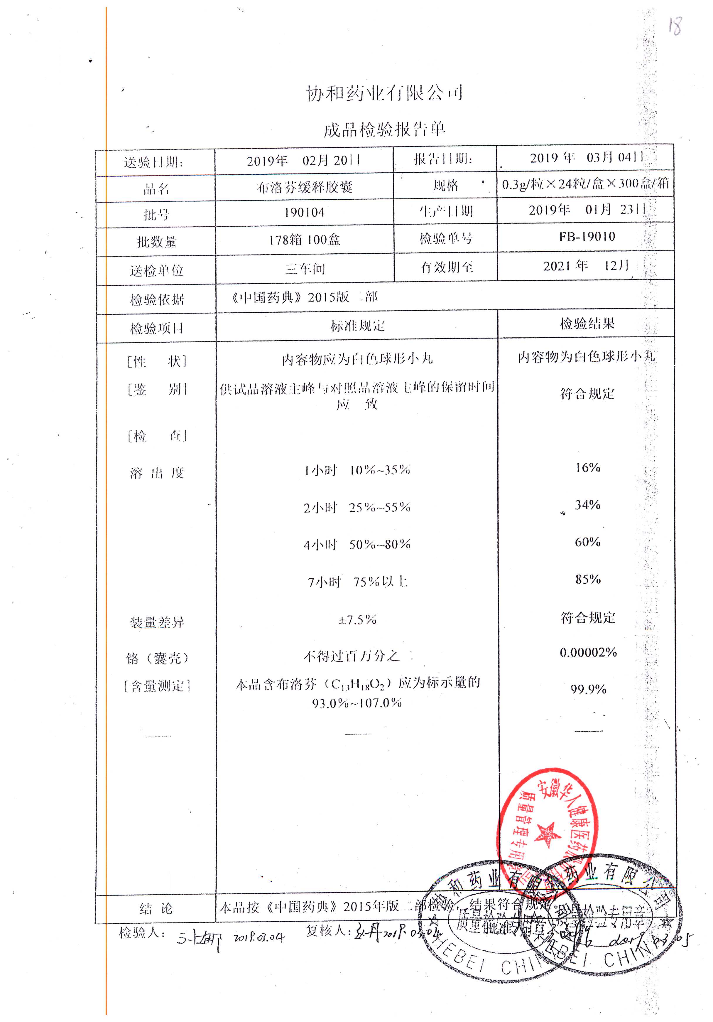 | 布洛芬緩釋膠囊 | 0.3g*24s | 191207 | 查看詳情 |