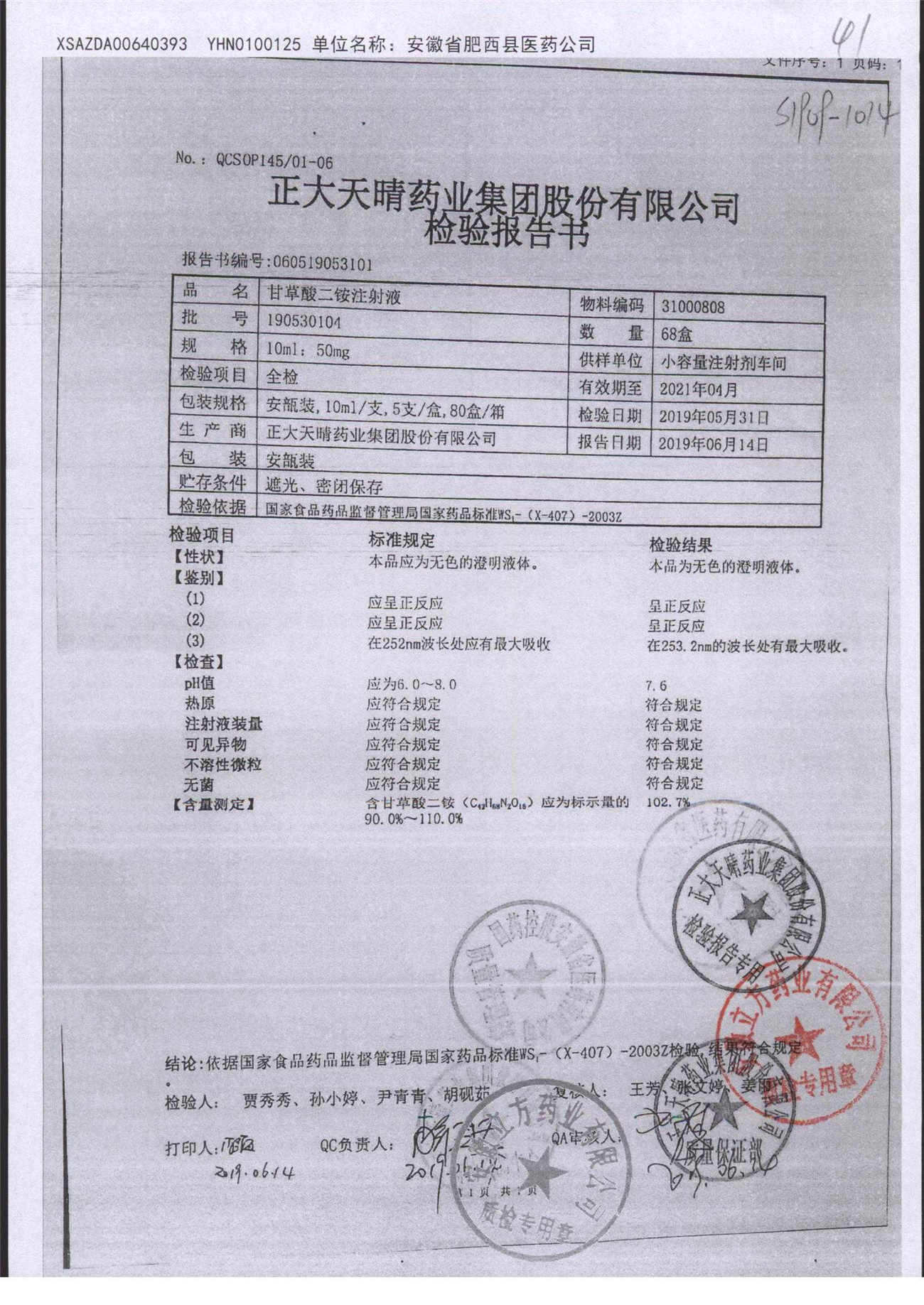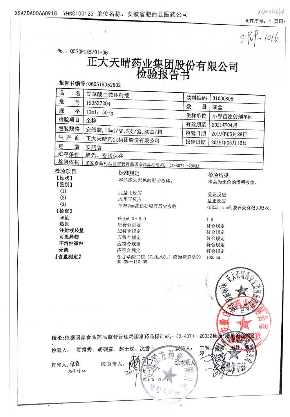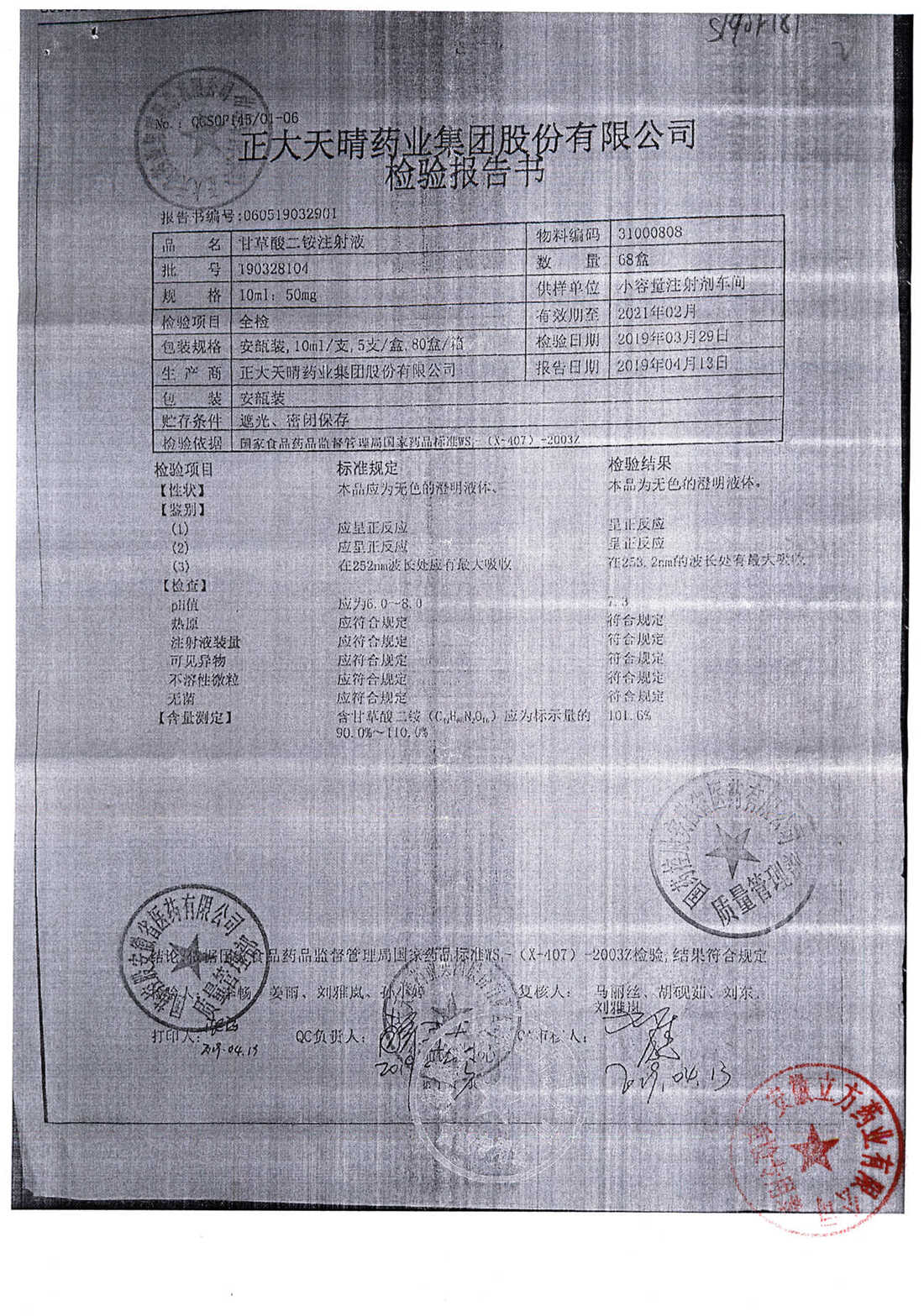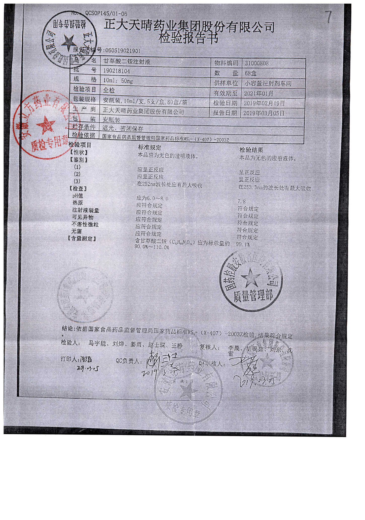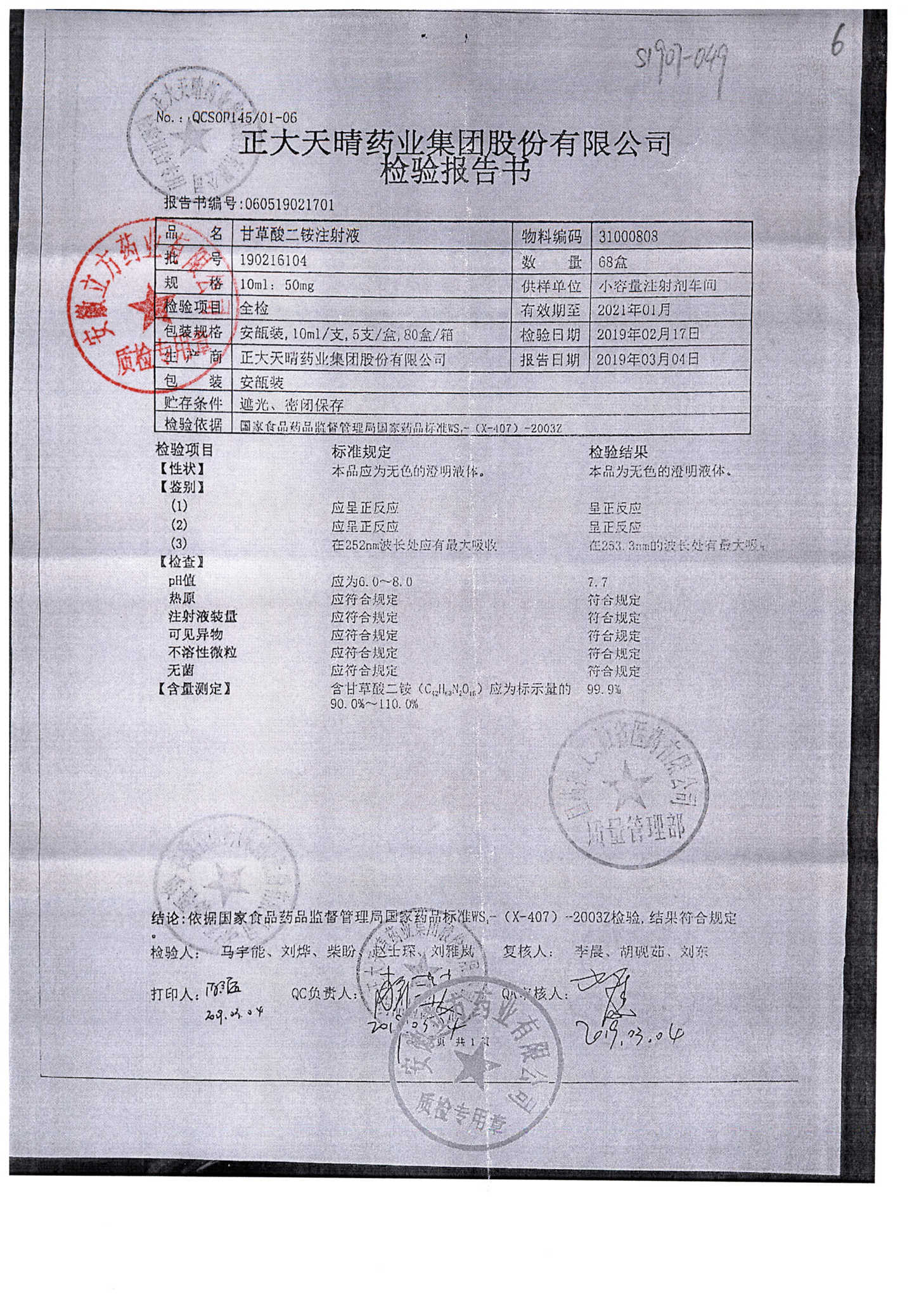 | 甘草酸二胺注射液 | 10ml:50mg | 190107104 | 查看詳情 |