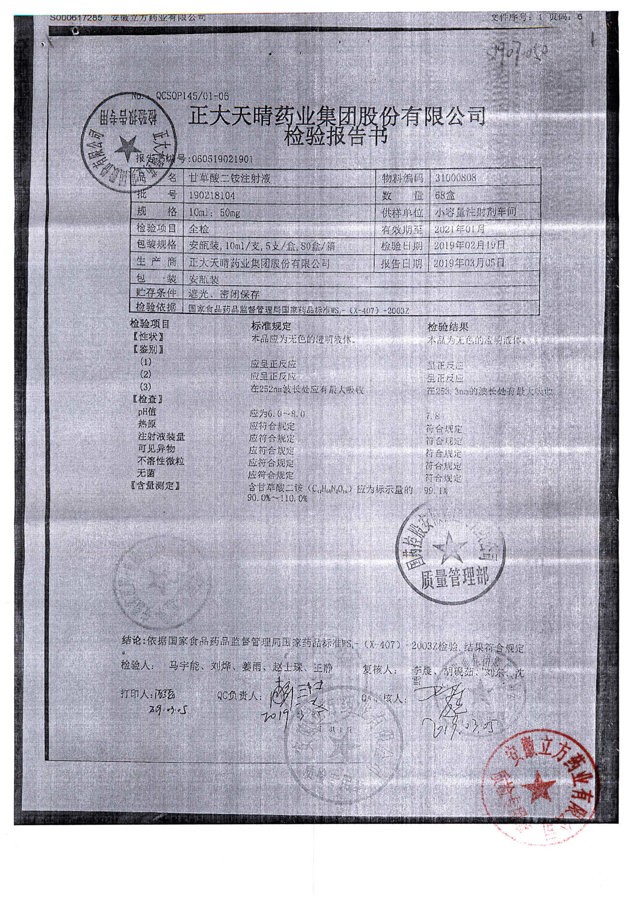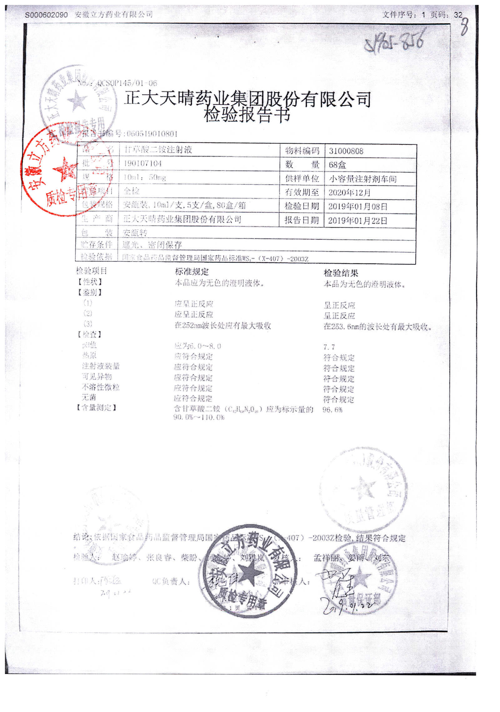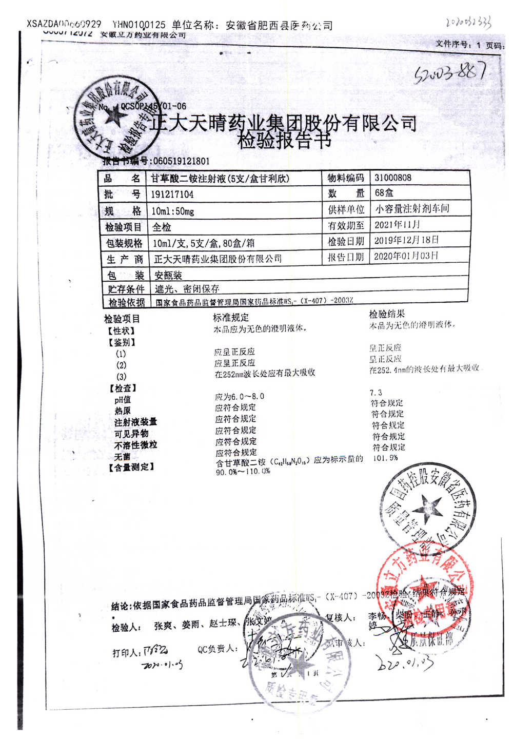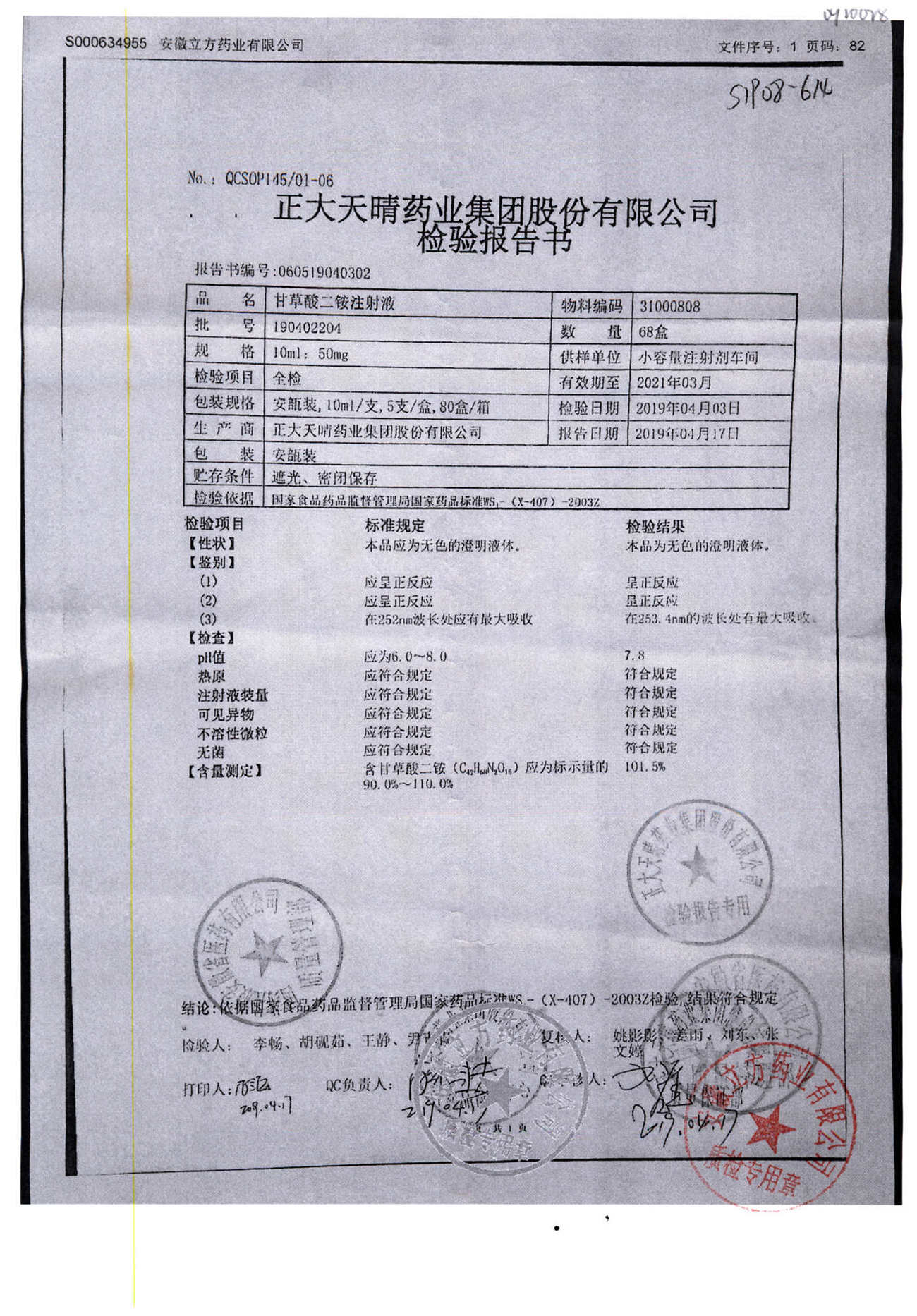 | 甘草酸二胺注射液 | 10ml:50mg | 190424102 | 查看詳情 |