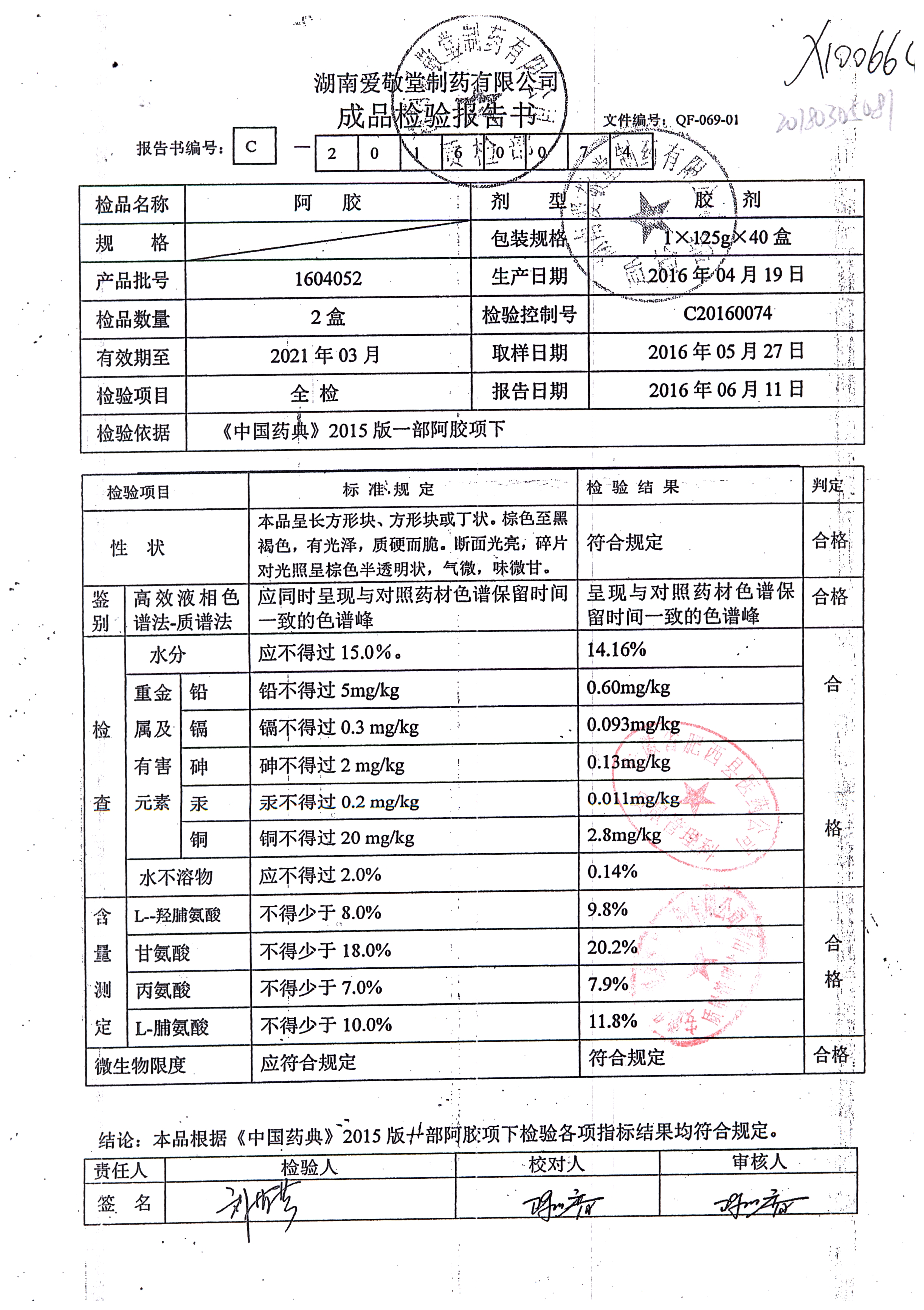 | 阿膠 | 125g/盒 | 161007(1/2) | 查看詳情 |