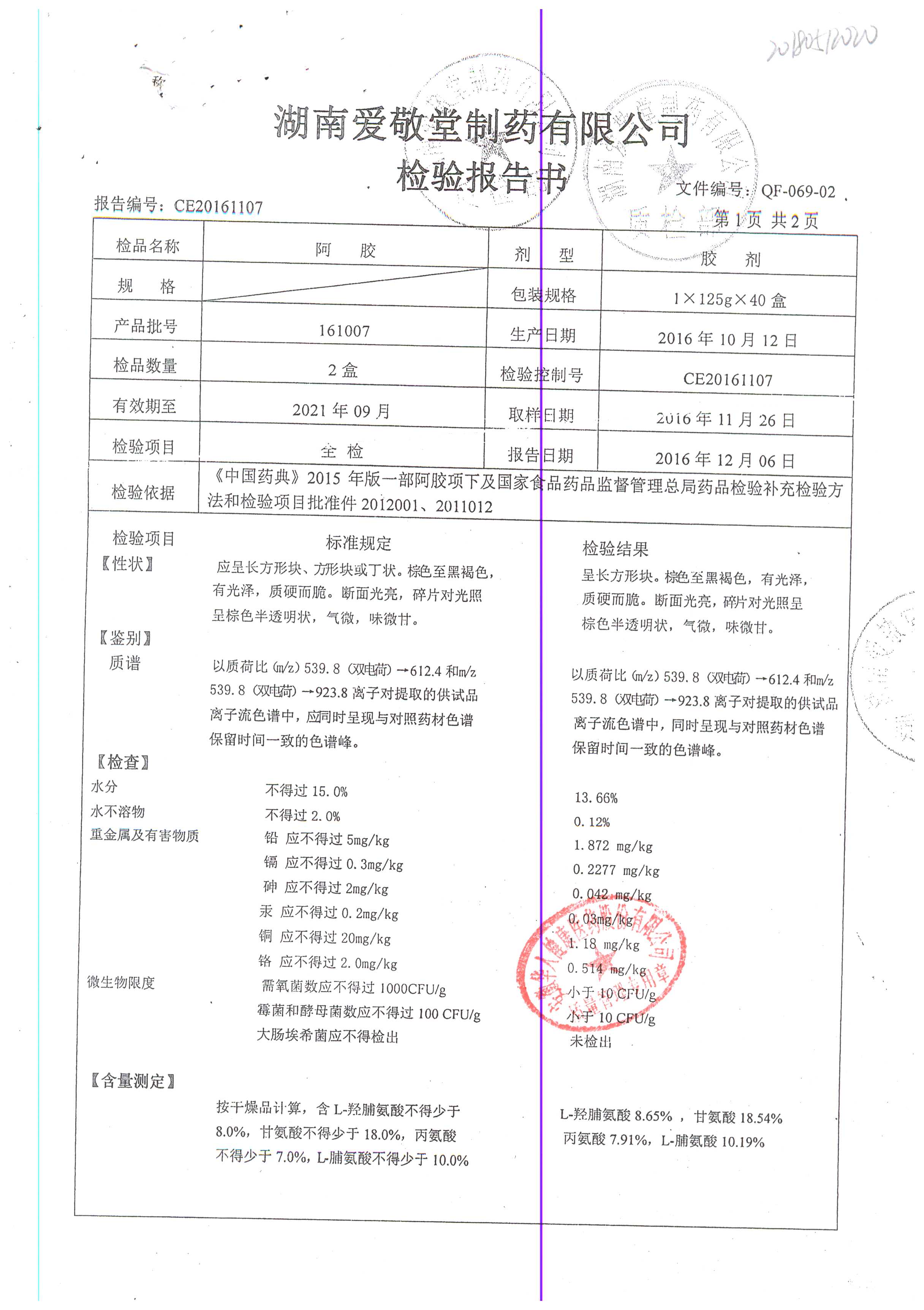 | 阿膠 | 125g/盒 | 161007(2/2) | 查看詳情 |