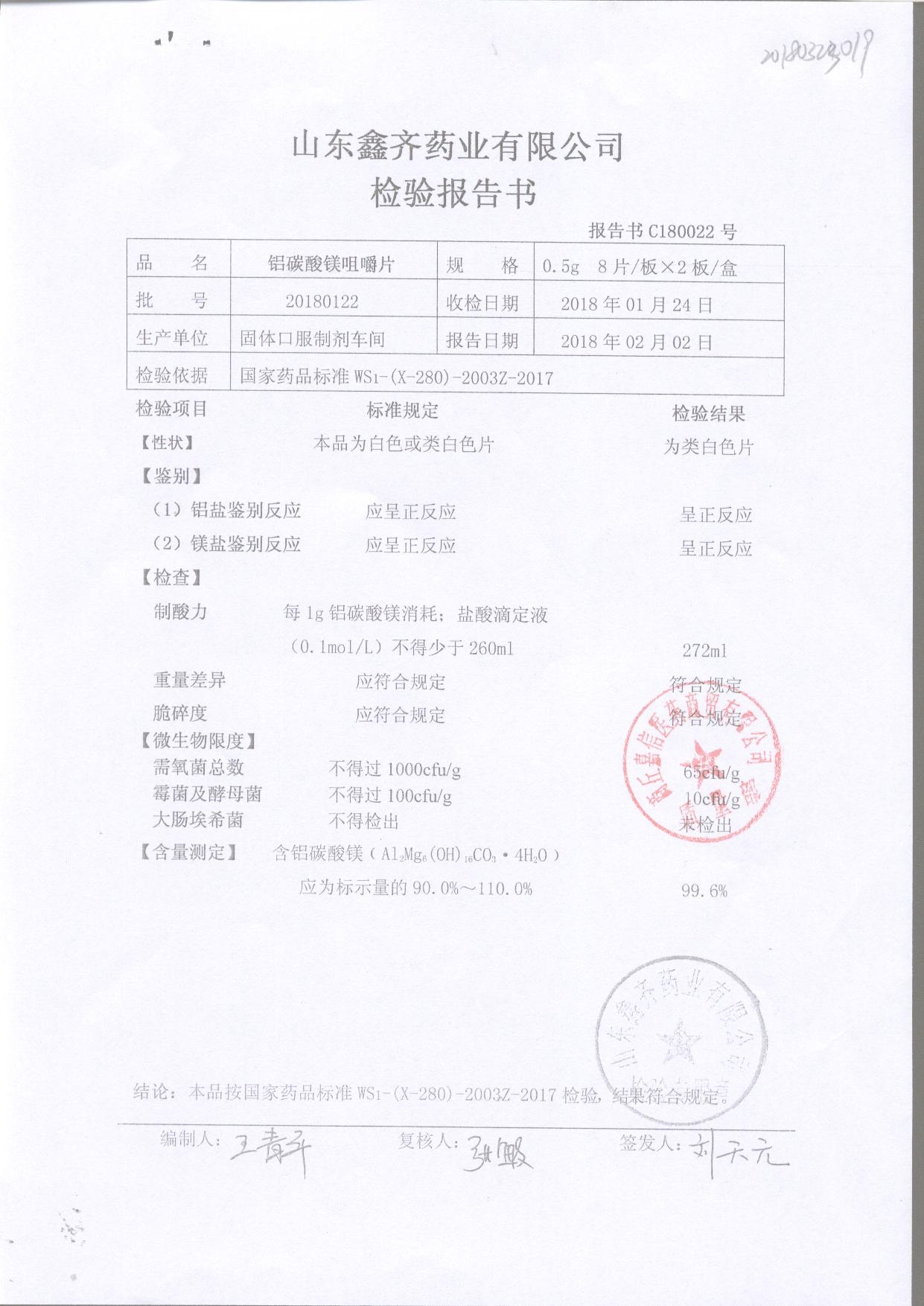 | 鋁碳酸鎂咀嚼片 | 0.5g*16s | 20180122 | 查看詳情 |