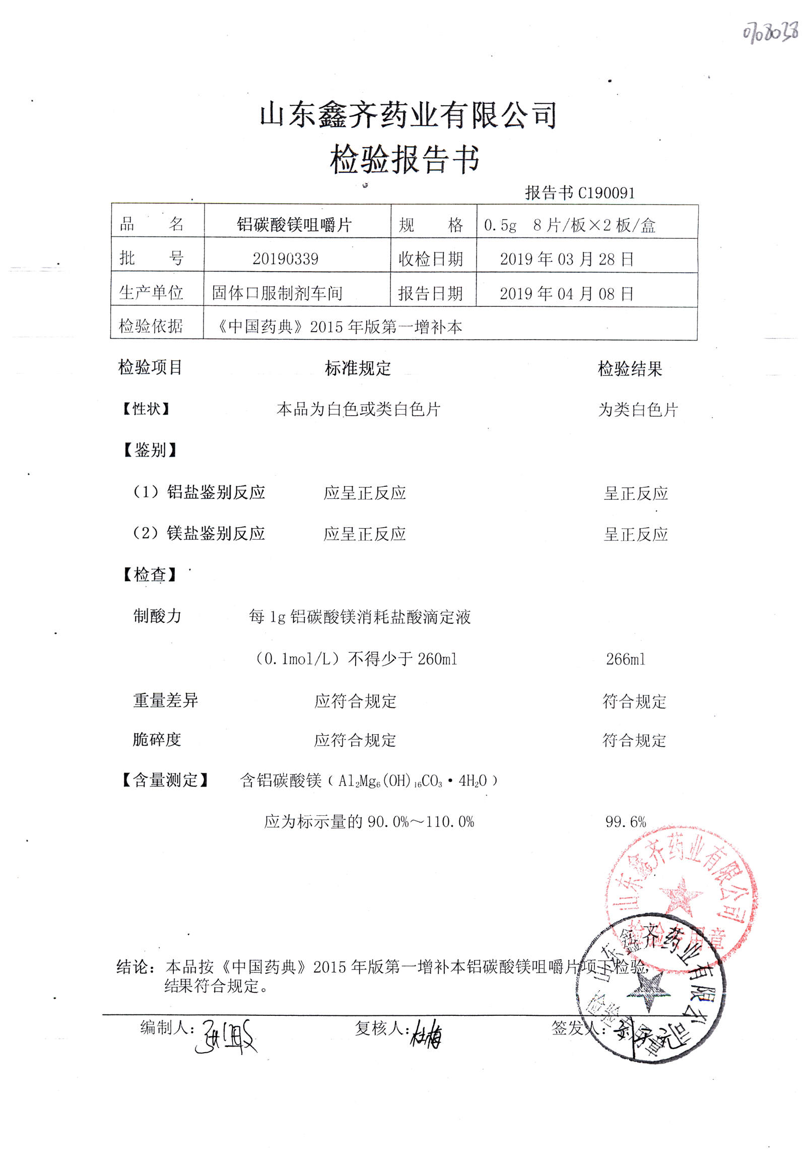 | 鋁碳酸鎂咀嚼片 | 0.5g*16s | 20190339 | 查看詳情 |